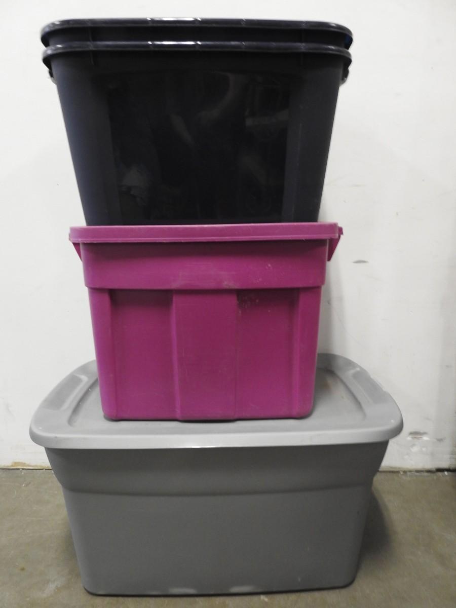 4 Totes, 2 With Lids, 2 NO Lids: Sterilite, Roughneck, Gray Tote Lid Has Cracks