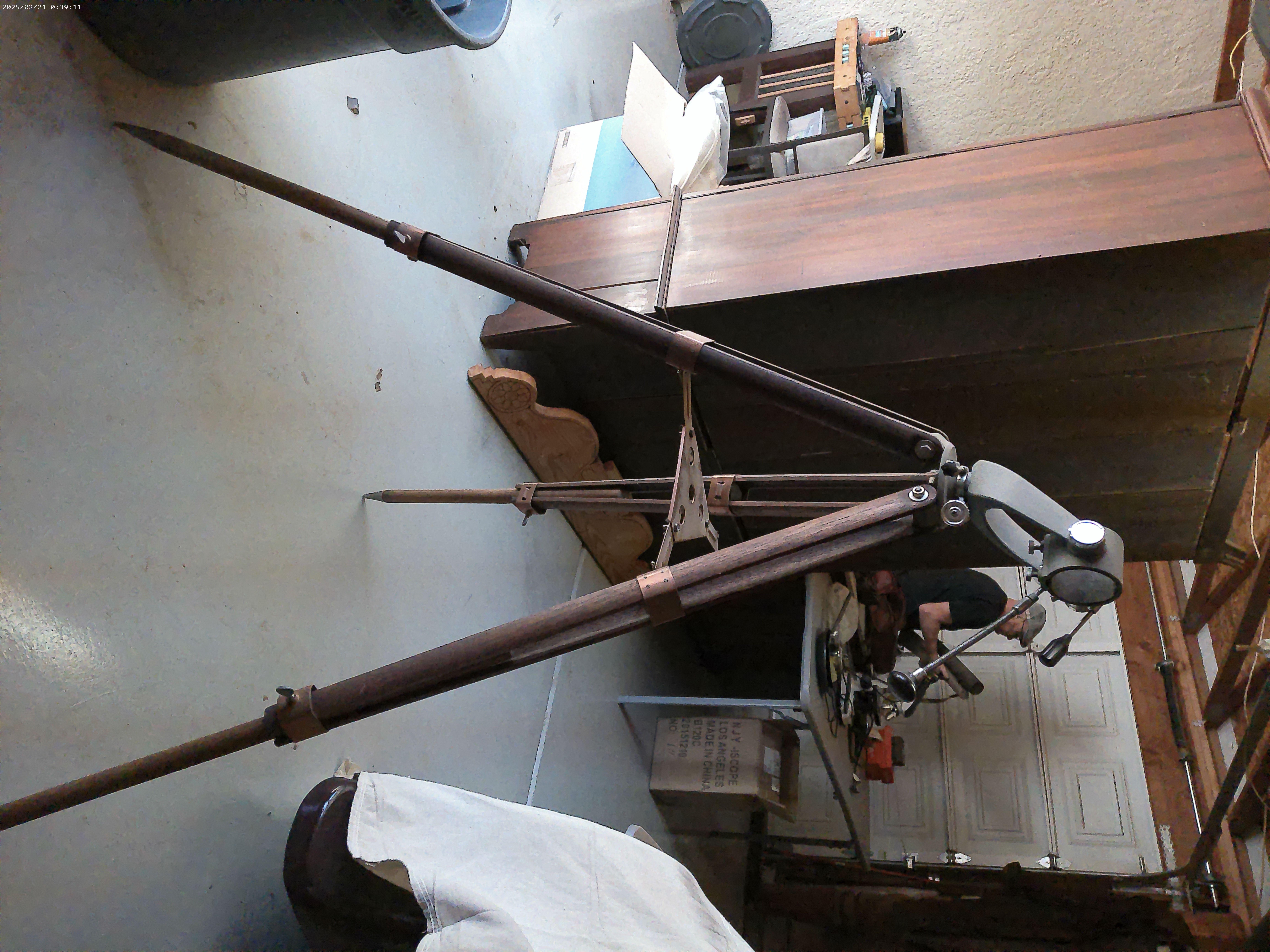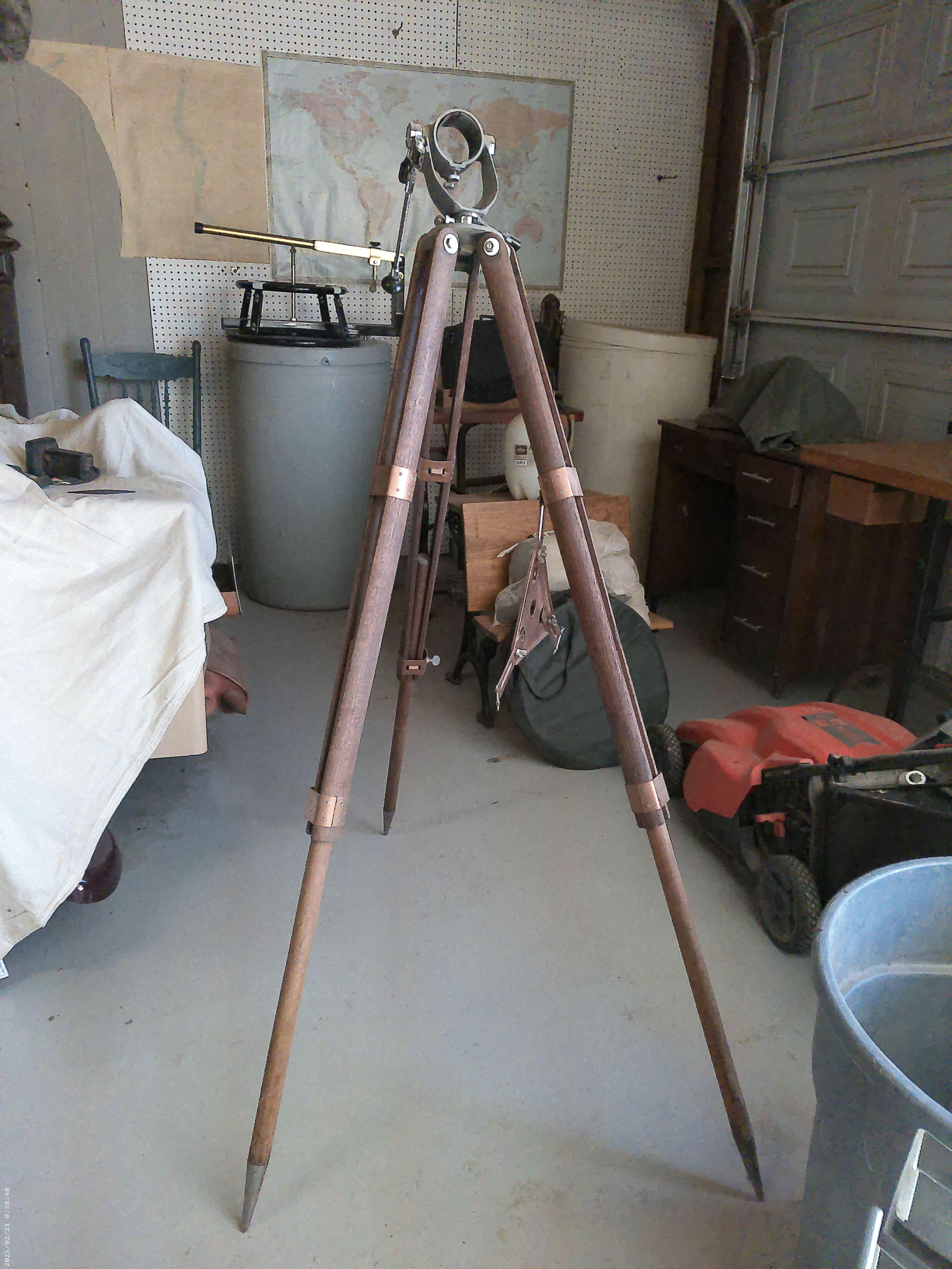 4' Tripod made with wood, copper and the scope holder is metal, in good condition