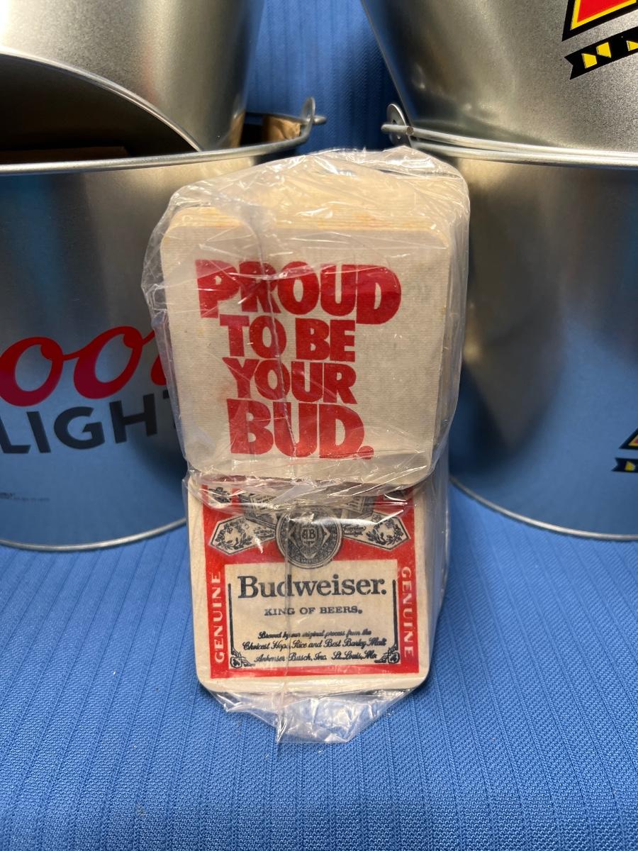 Bar Lot - UMD Ice Buckets, Budweiser Coasters