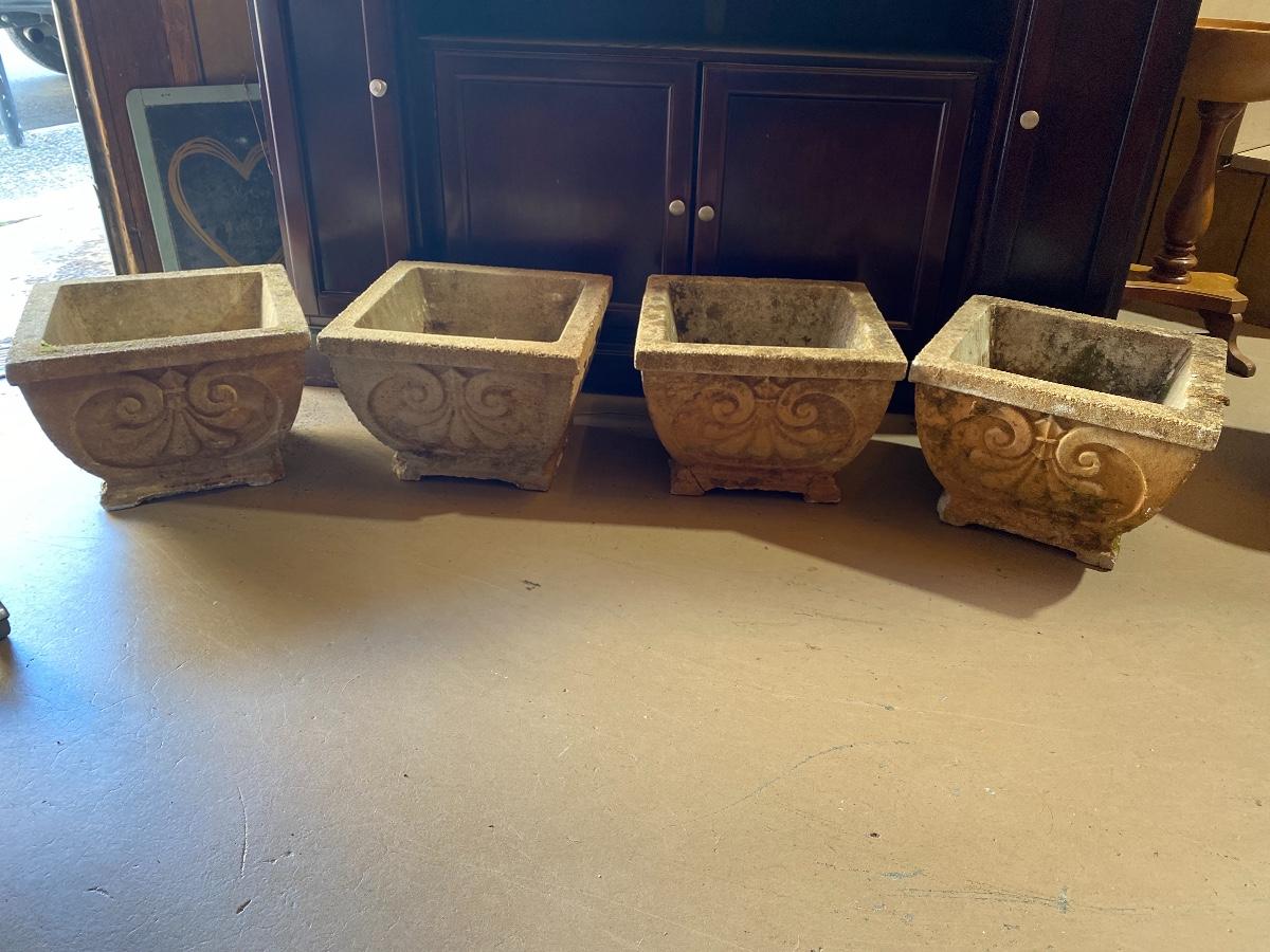 4 Vintage 13”x 13” Concrete Planters