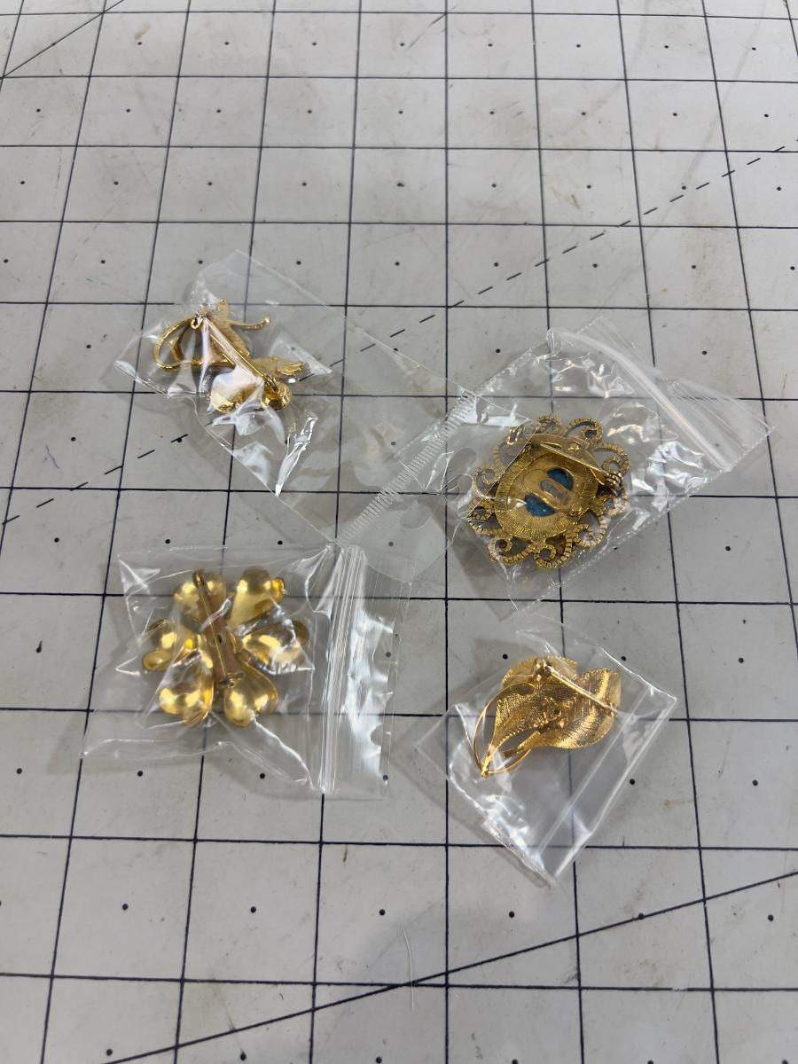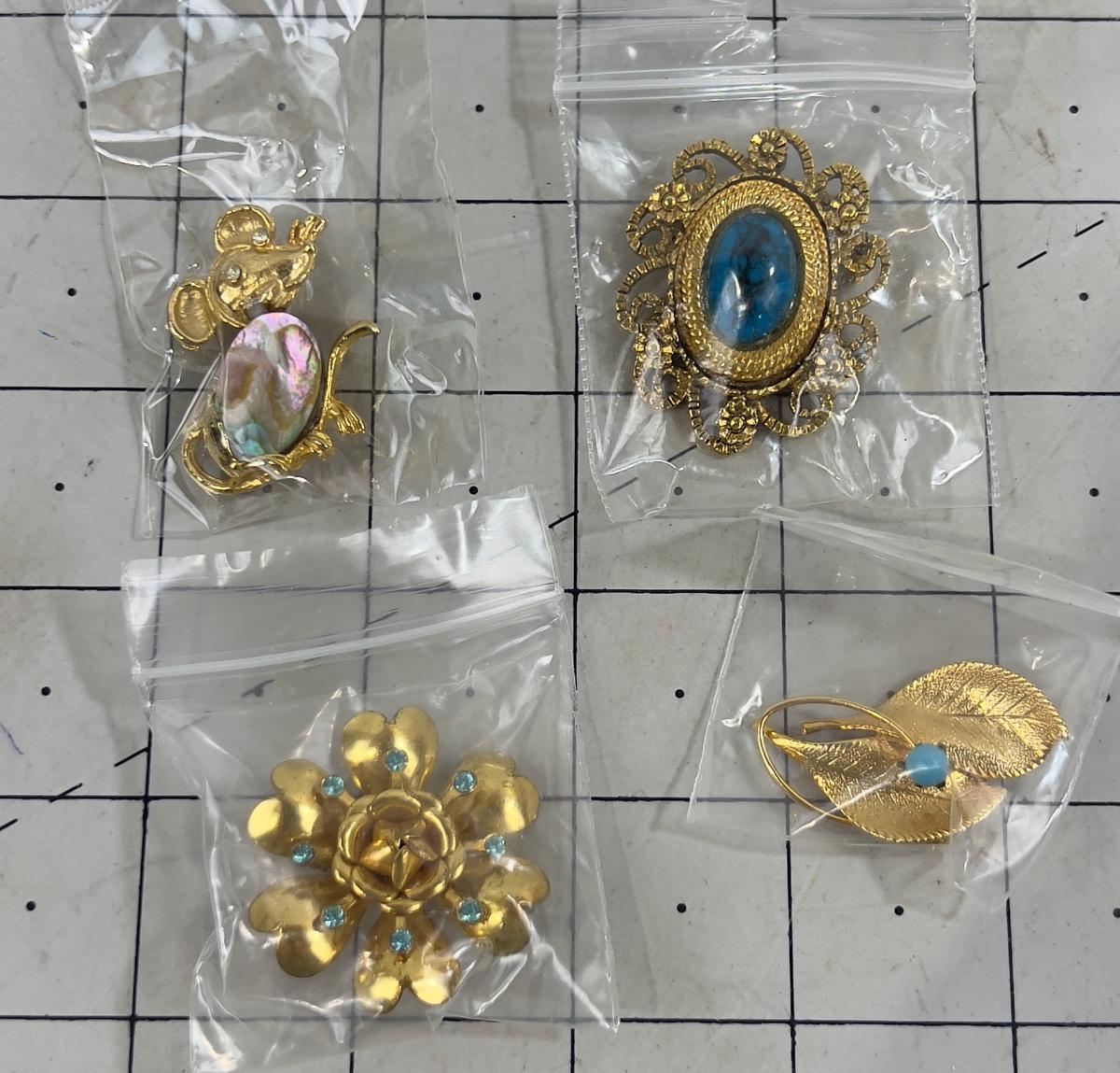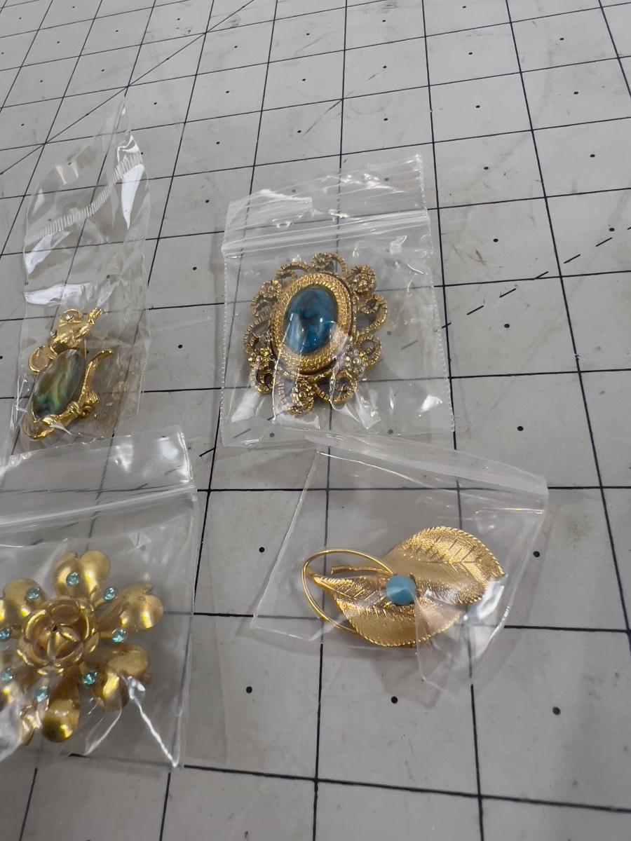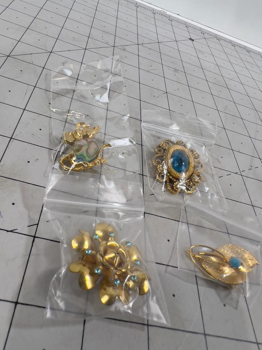 4 Vintage 1970's Broches - All Blueish Stones
