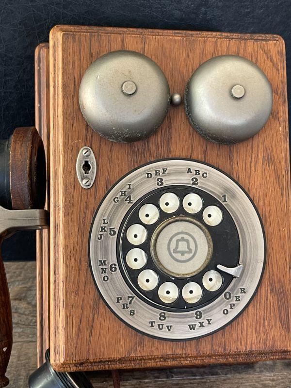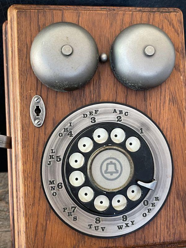 4: Vintage 1970's Oak Wooden Western Electric Rotary Dial Wall Telephone