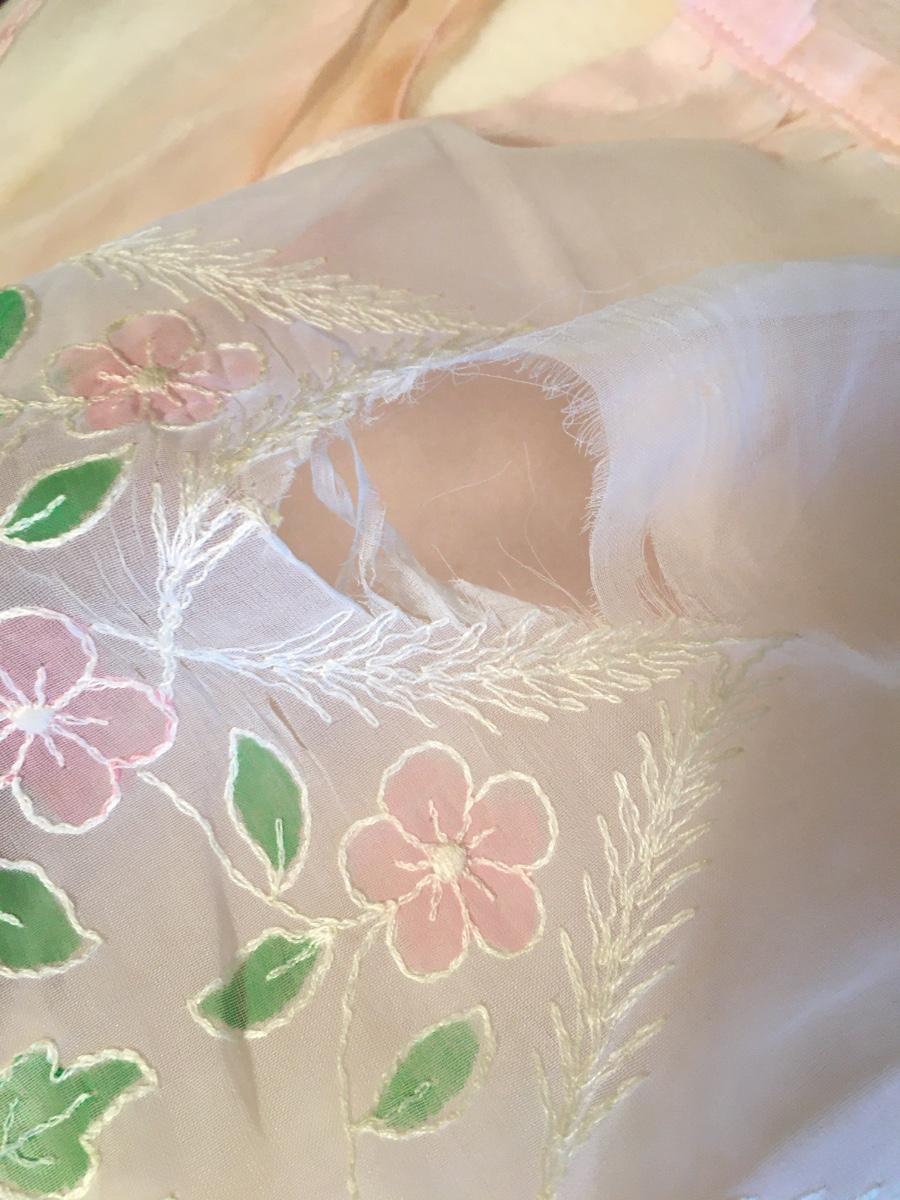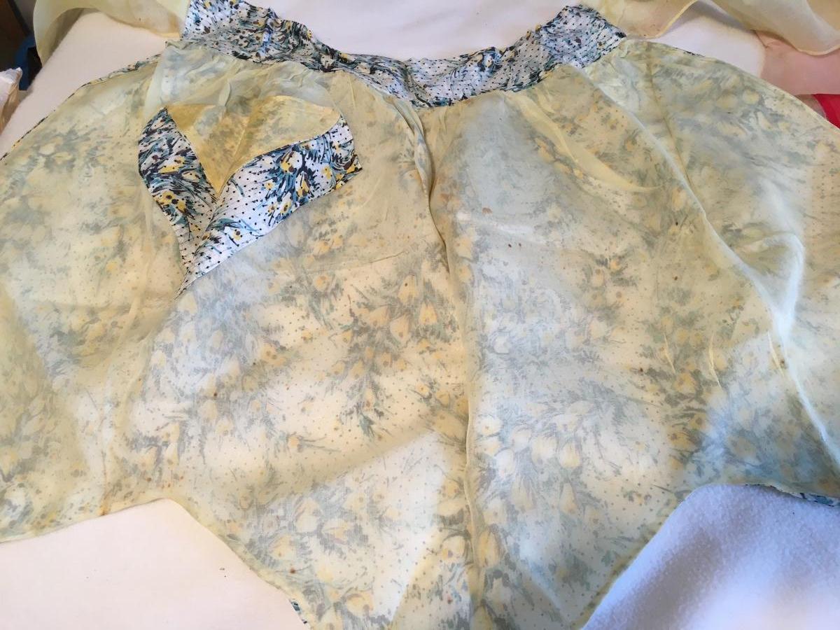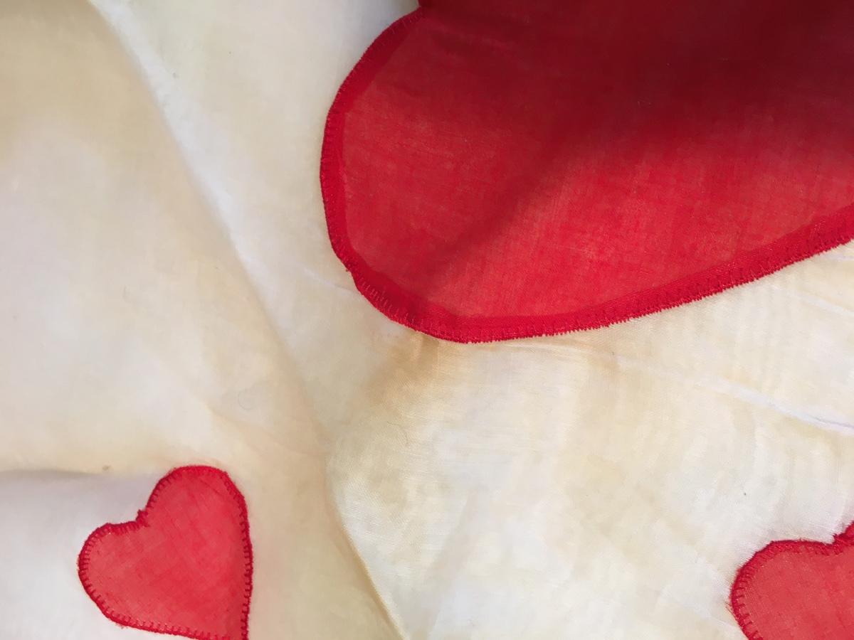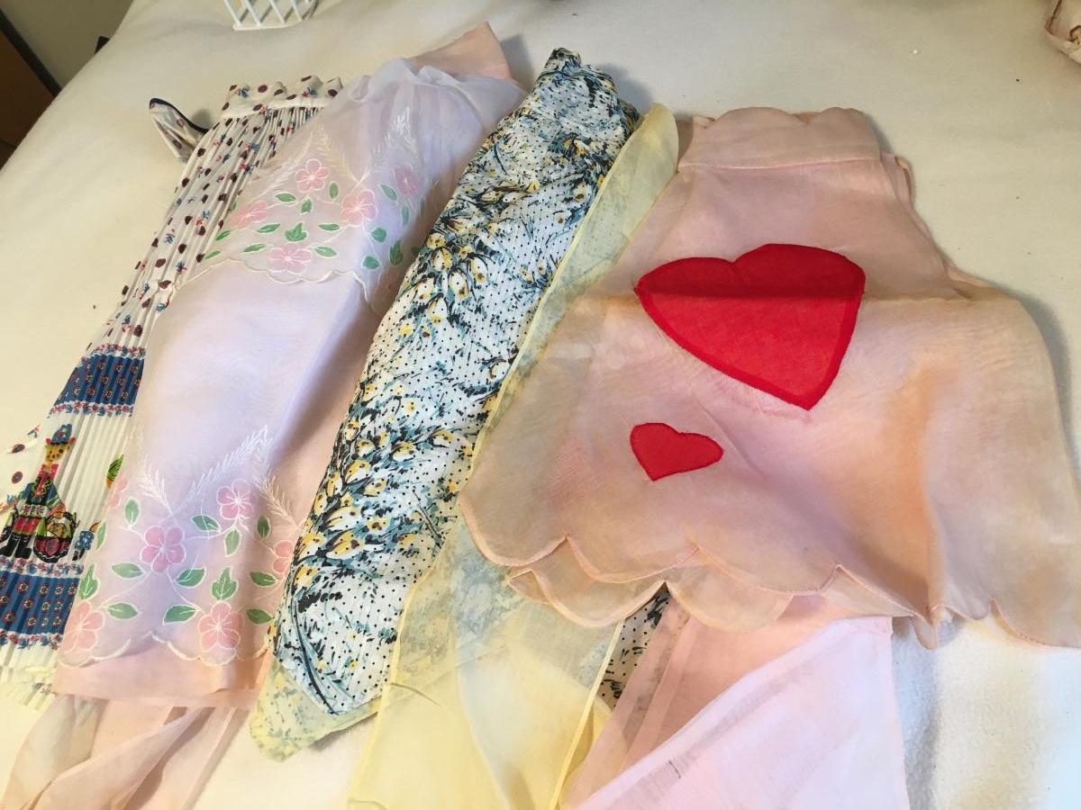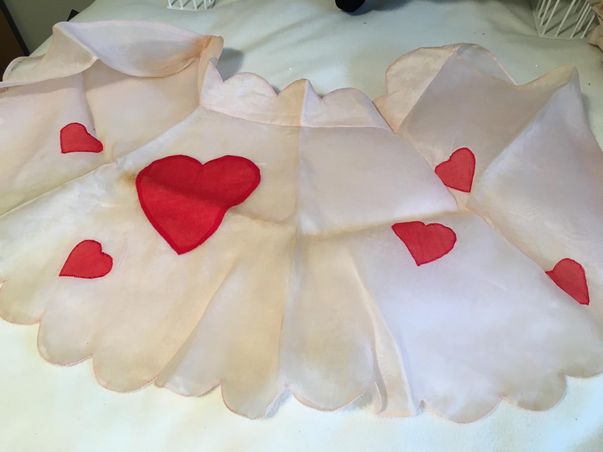 4 vintae aprons, used condition as shown n photos. One is reversible. Heart one is stiff organza.