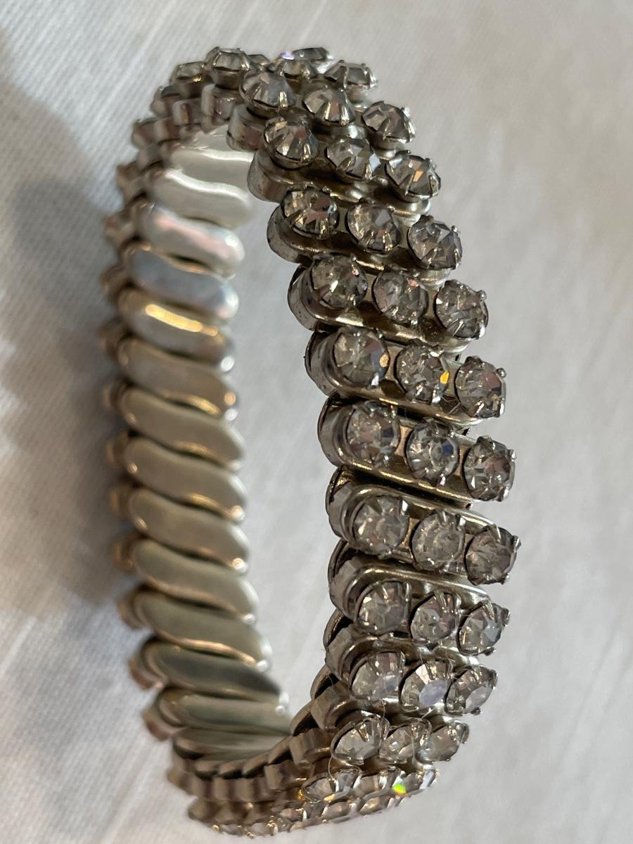 The silver tone rhinestone stretch bracelet looks like all stones are intact.