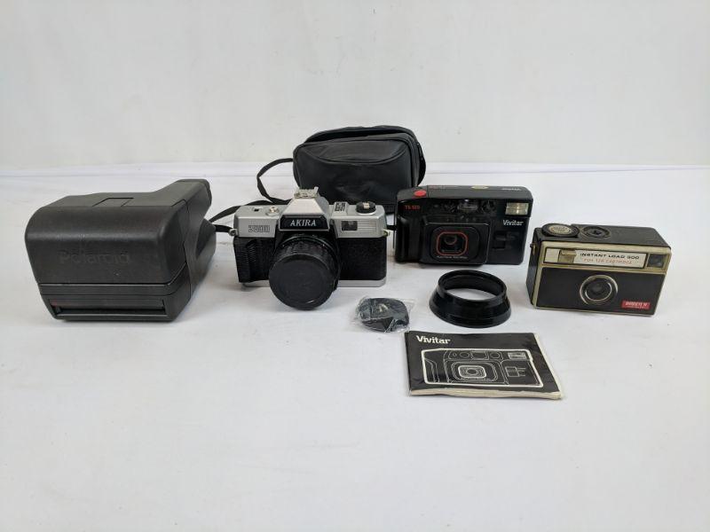 4 Vintage Cameras, Polaroid, Akira, Vivitar, Birdseye IV, Not Tested