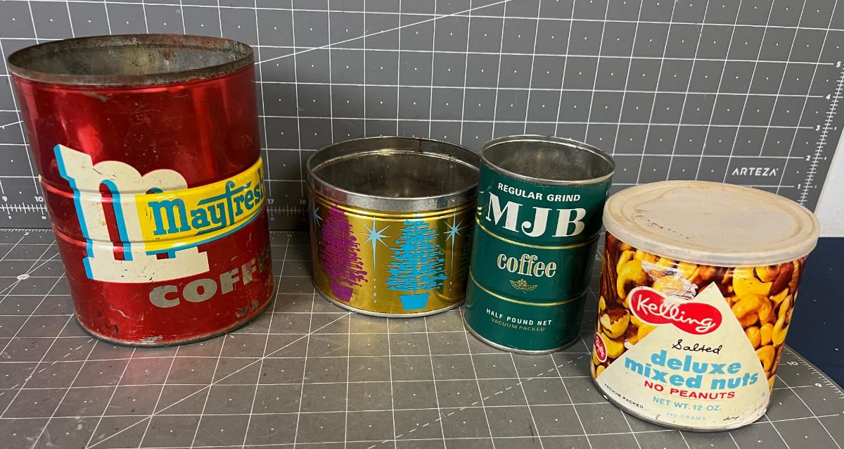 (4) Vintage Cans; Coffee, Nuts etc.