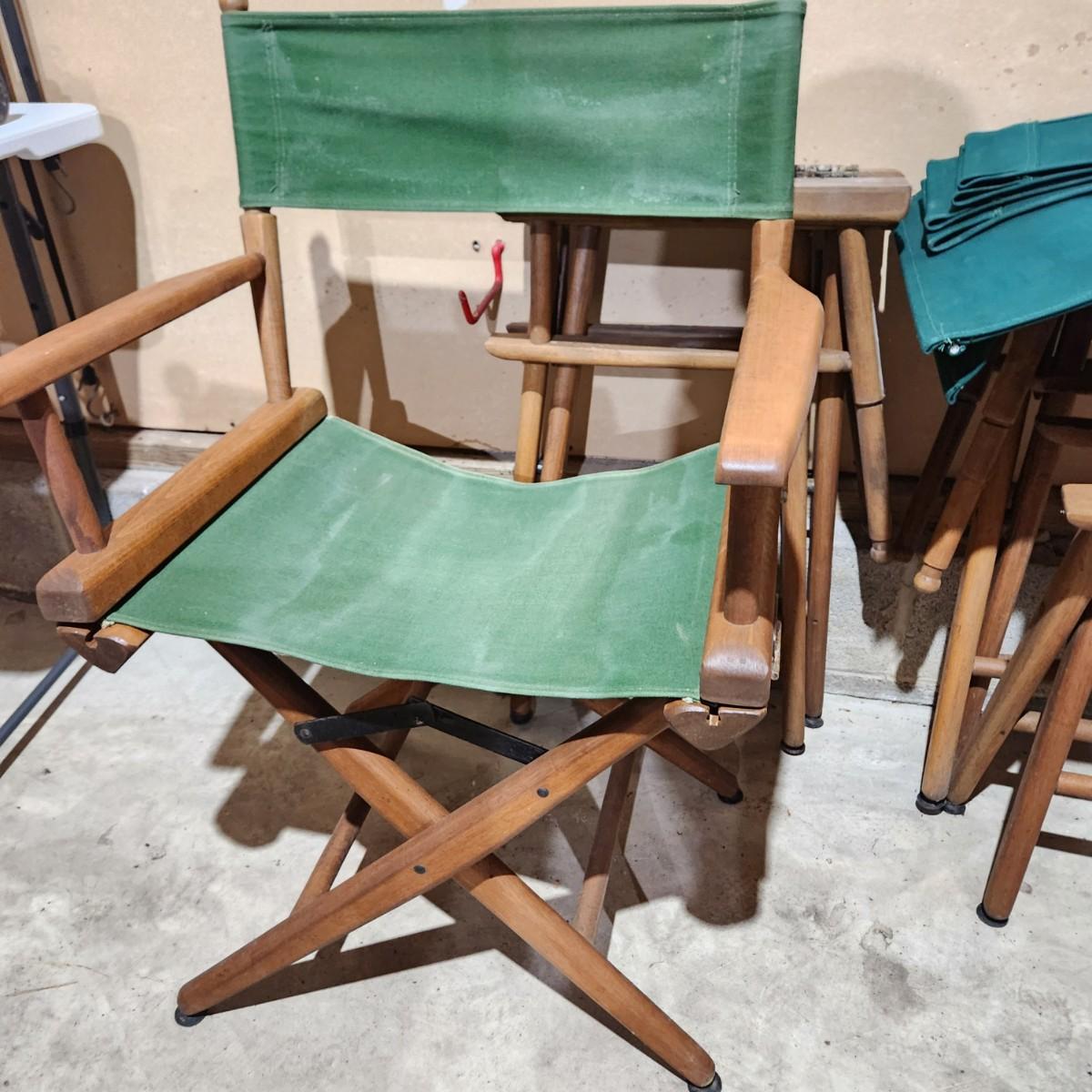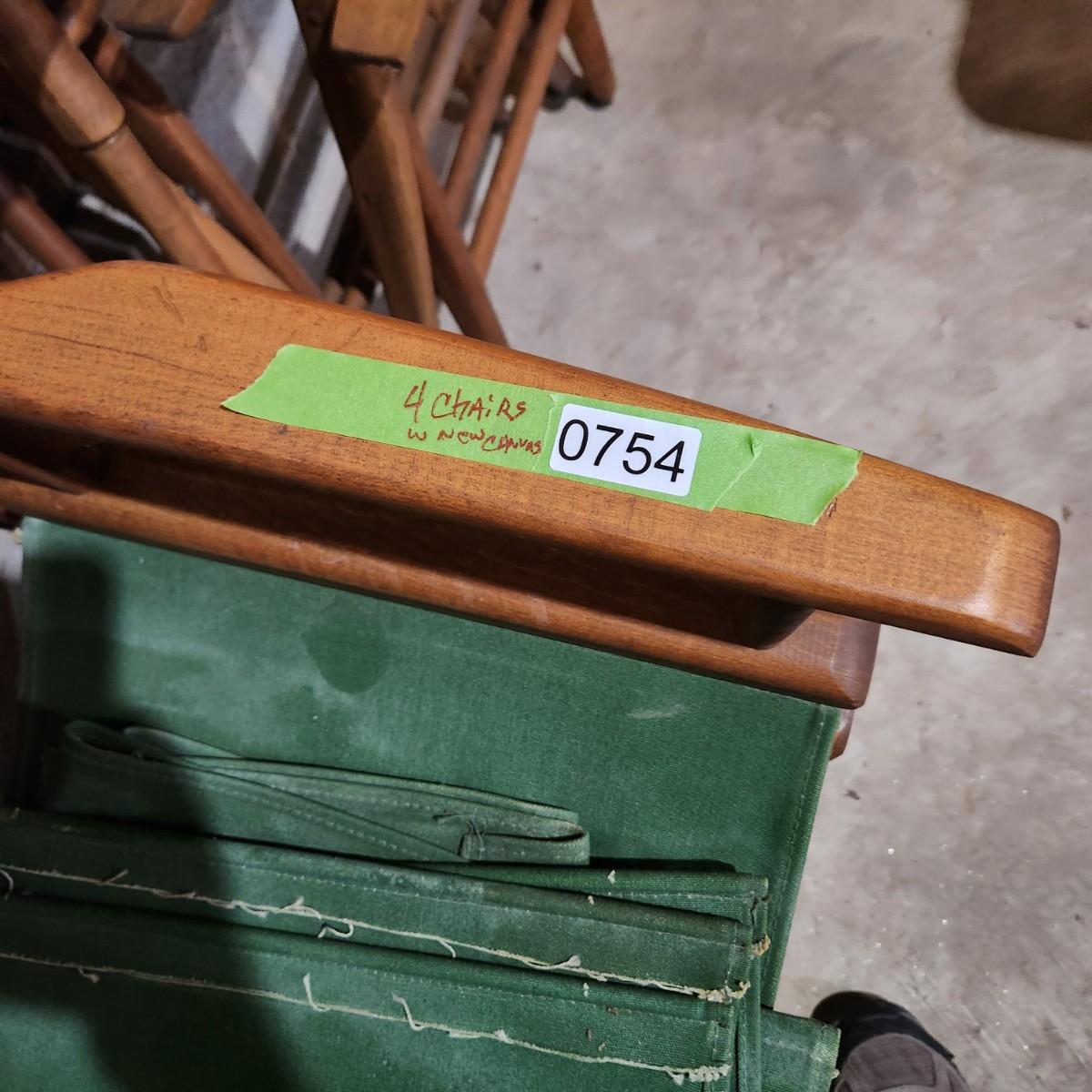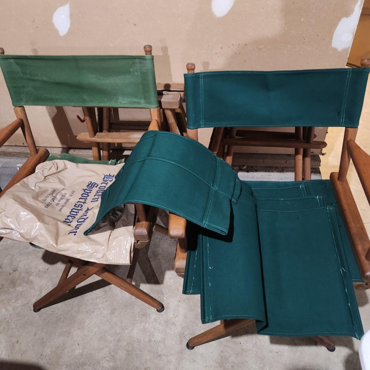 4 Vintage Canvas Telescope Folding Chairs w 4 Sets of New Green Backs & Seats, w Floating Leveling Feet