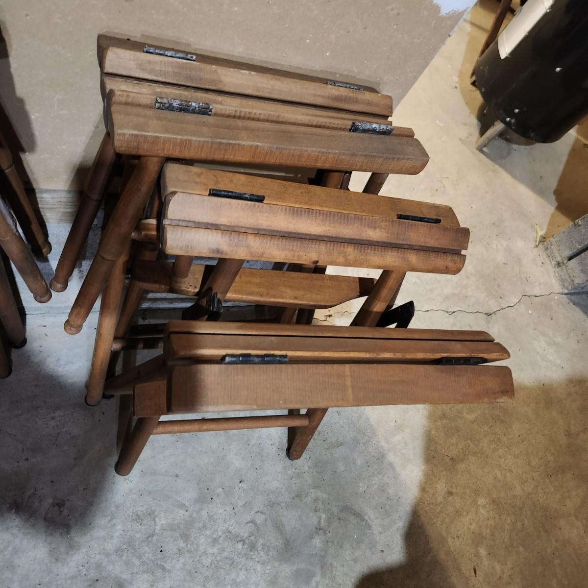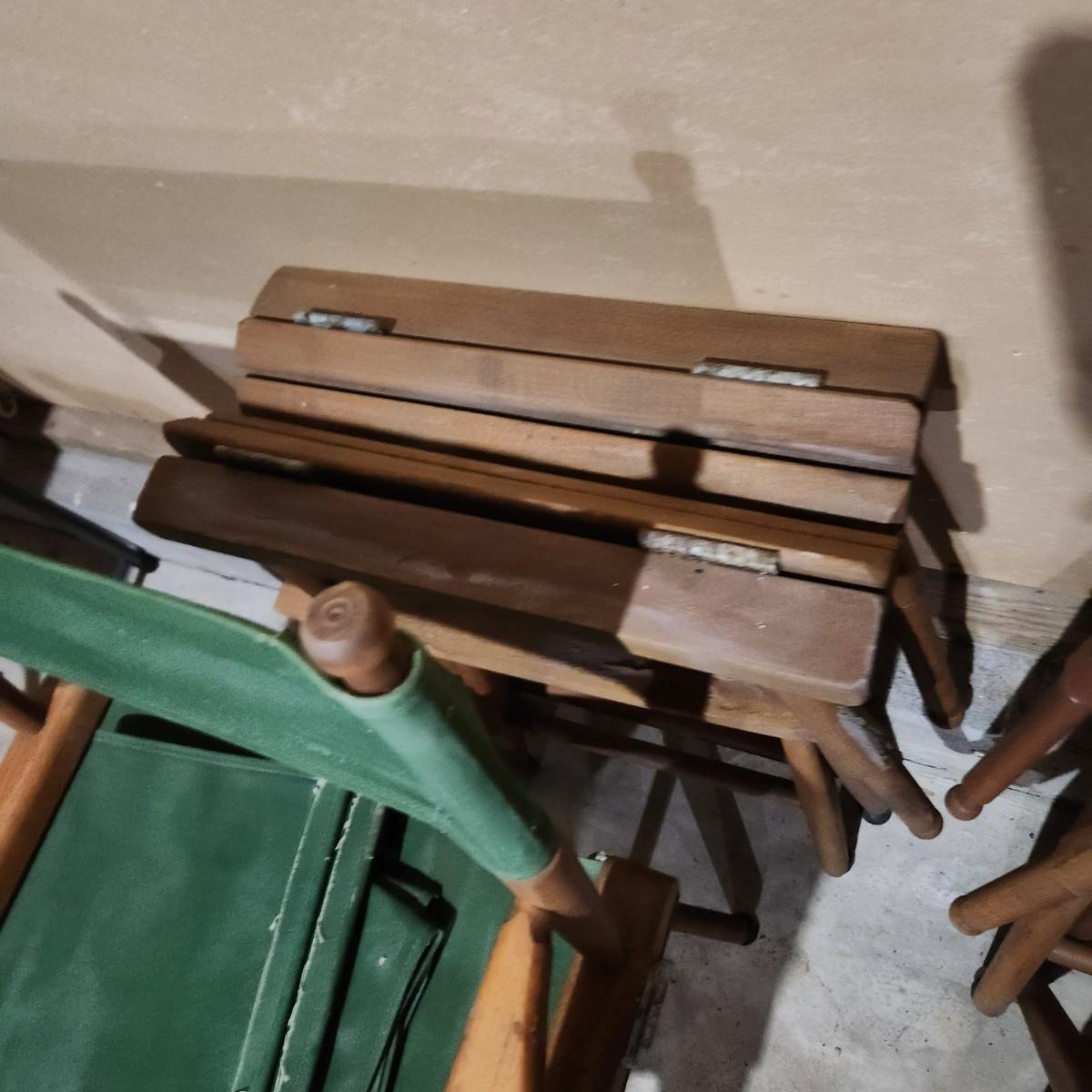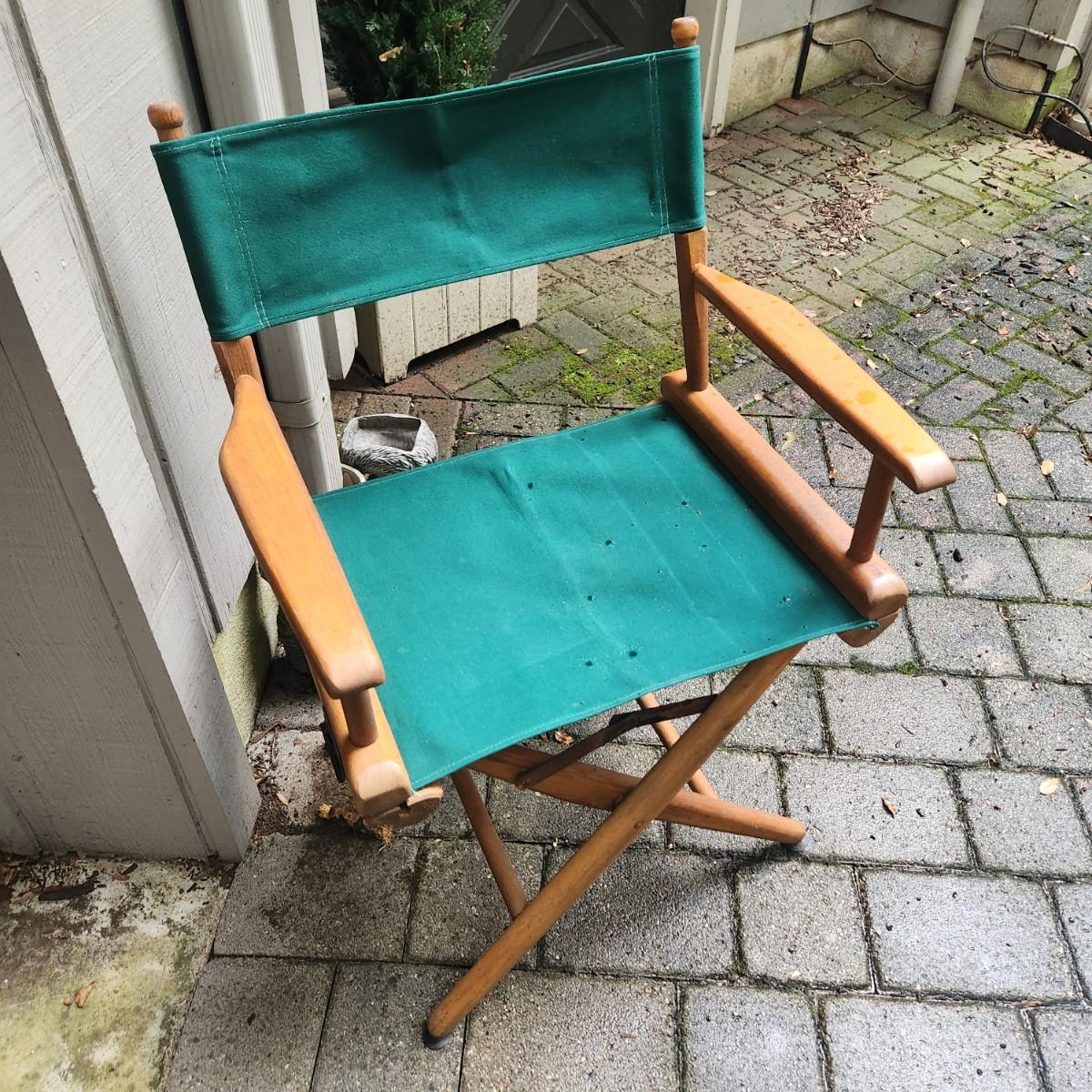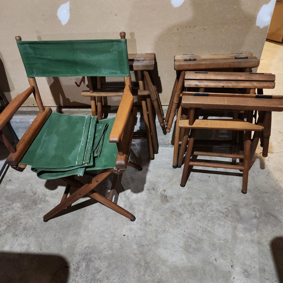 4 Vintage Canvas Telescope Folding Chairs w 4 Sets of New Green Backs & Seats, w Floating Leveling Feet