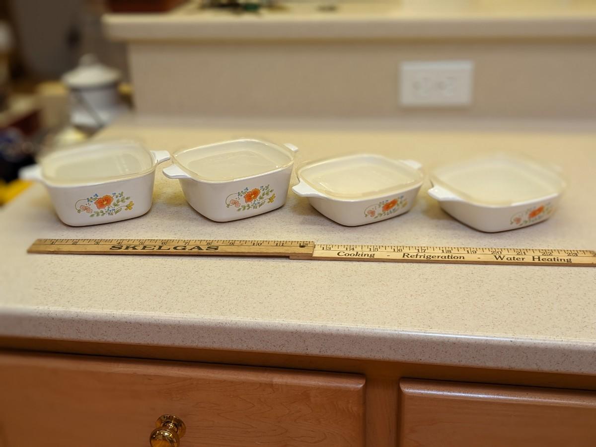 4 Vintage CORNING WARE Wildflower Casseroles with Lids
