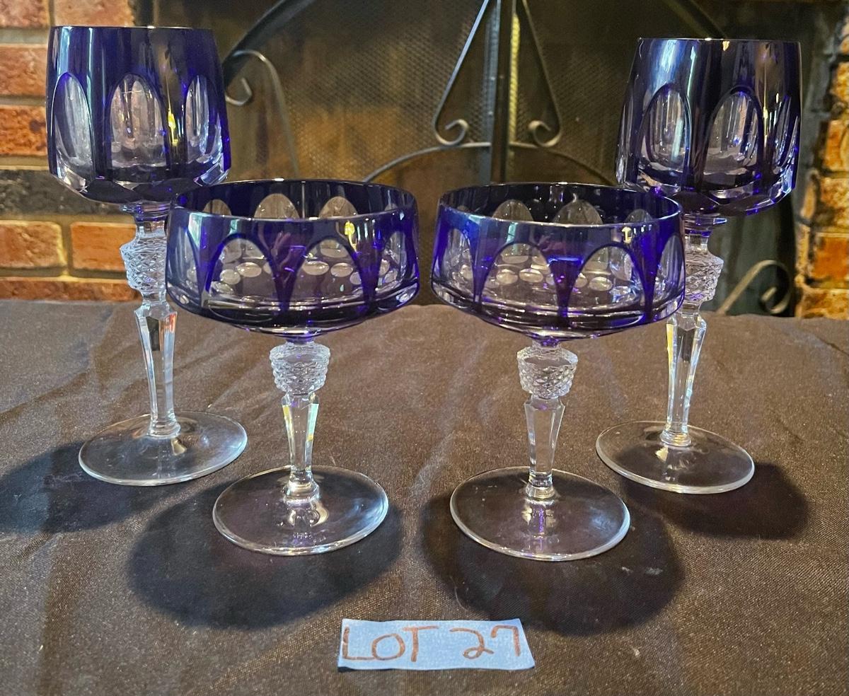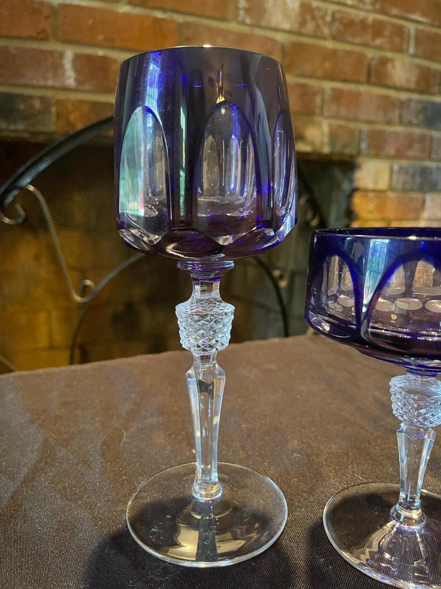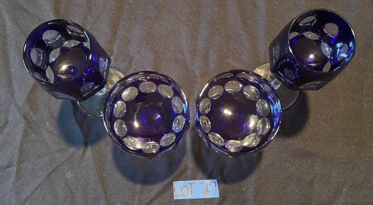 4 Vintage Cut-to-clear Cobalt blue 24% Lead Crystal Glasses