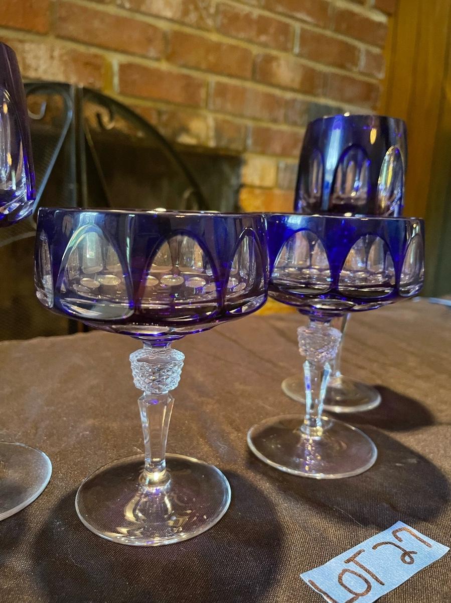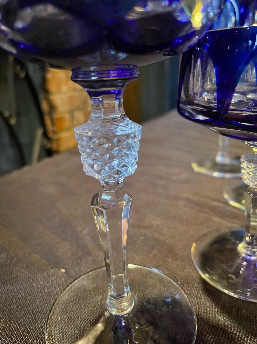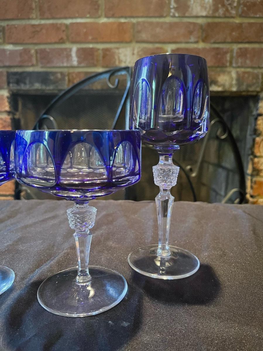 4 Vintage Cut-to-clear Cobalt blue 24% Lead Crystal Glasses