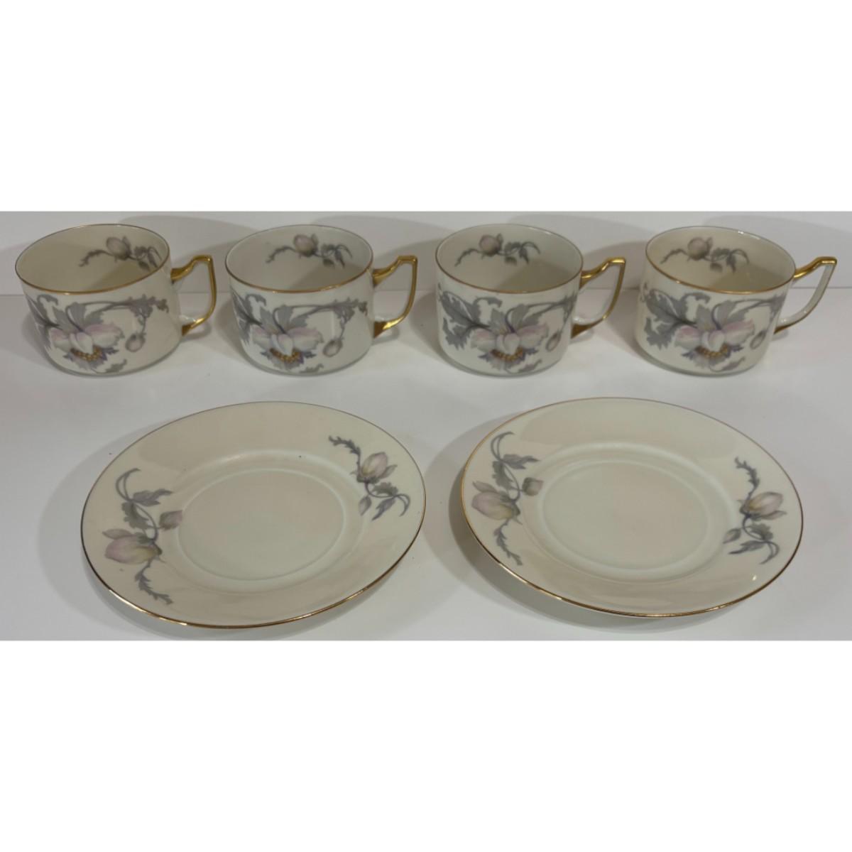 You get four teacups and two saucers. Each teacup stands approximately 2.25" tall and has a roughly 3.25" diameter. The saucers have a 6" diameter. Please see all pictures. Thank you for looking. As a reminder, if this is a lot, we do not break up lots. Also, all items are prepacked, so each item is sent individually. Any item that qualifies for media mail and weighs over one pound will be shipped via media mail. Otherwise, the item will be shipped USPS ground advantage, or UPS ground. Shipping for this item is $13.00. Items ship within two days after payment is received. Item SKU is OTH3297.