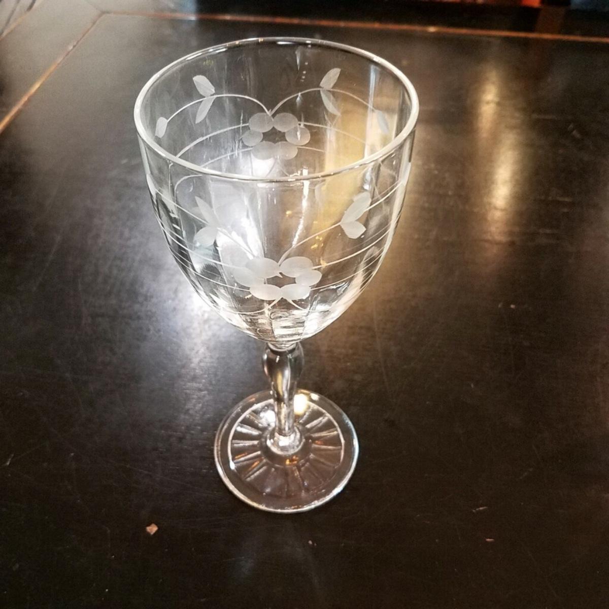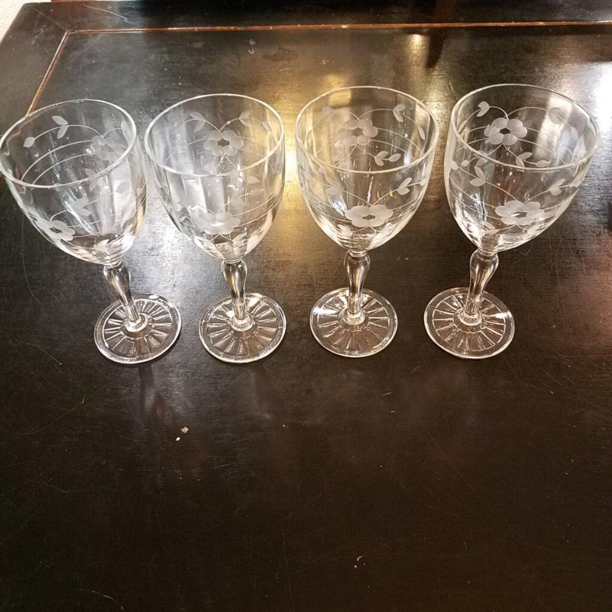 4 vintage etched crystal wine glasses 7-1/4” tall 2-3/4”dia, excellent condition