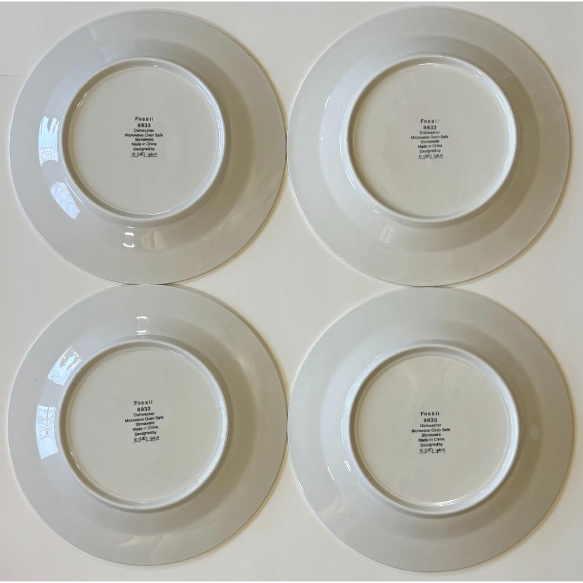 4 Vintage Fossil 8833 Dinner Plates Sue Zipkin Round - A