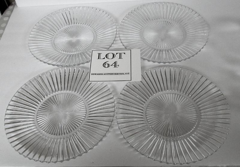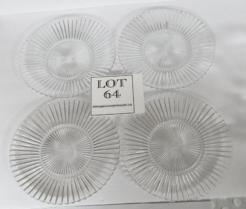 4 Vintage Heisey Glass 8" Plates, Ridgeleigh Pattern, Marked