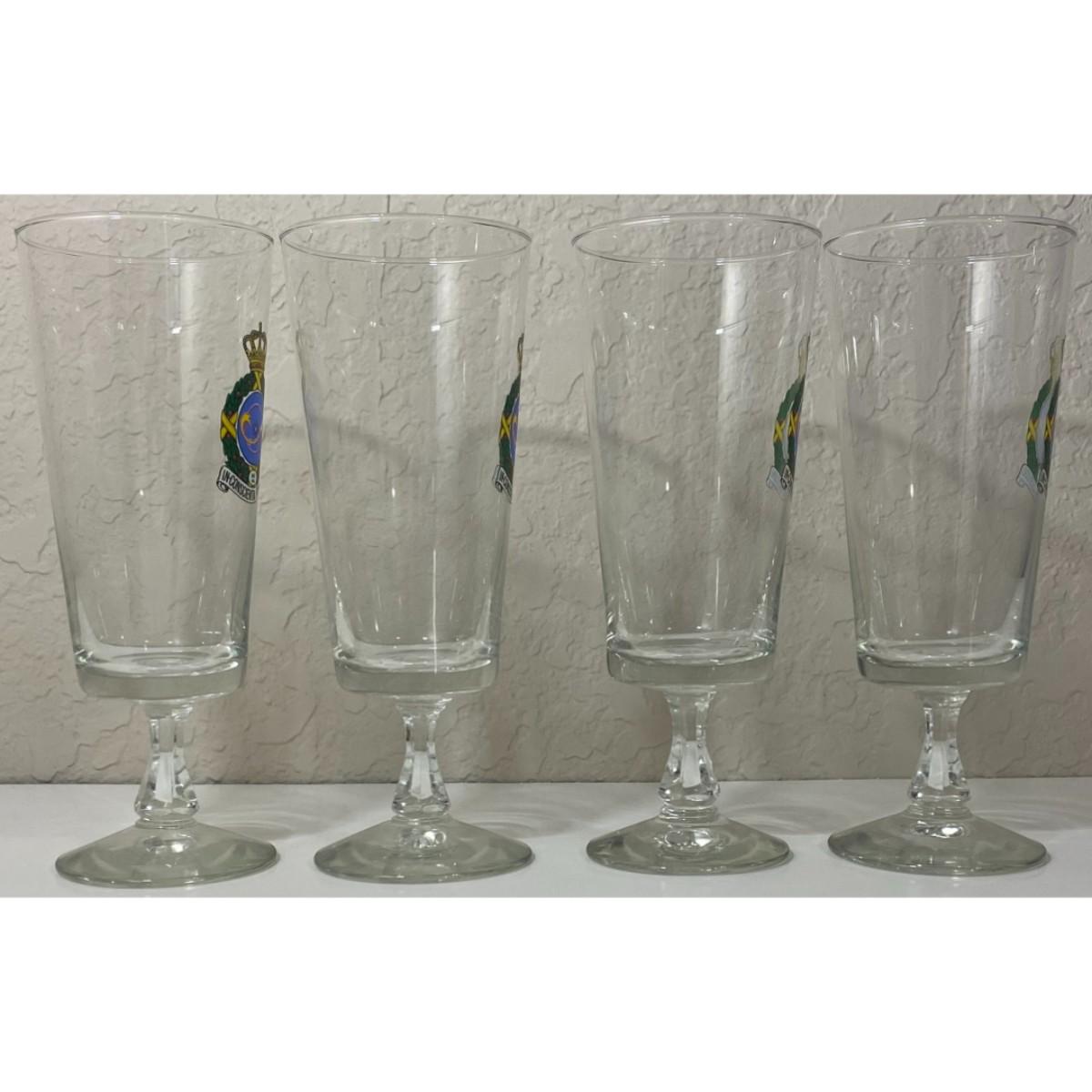 You get four glasses that are in good condition with minor surface wear. They stand approximately 7" tall and have a diameter of roughly 2.75" at the rim. Please see all pictures. Thank you for looking. As a reminder, if this is a lot, we do not break up lots. Also, all items are prepacked, so each item is sent individually. Any item that qualifies for media mail and weighs over one pound will be shipped via media mail. Otherwise, the item will be shipped USPS ground advantage, or UPS ground. Shipping for this item is $12.00. Items ship within two days after payment is received. Item SKU is OTH3110.