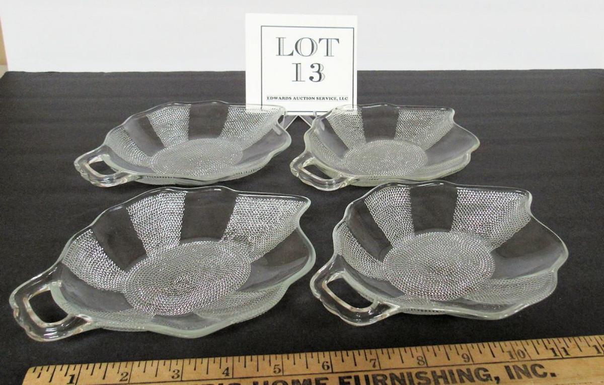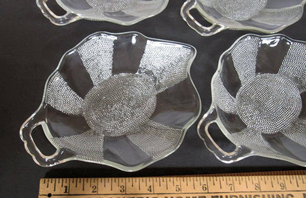 4 Vintage Jeanette Glass Dewdrop Pattern Leaf Shaped Dishes