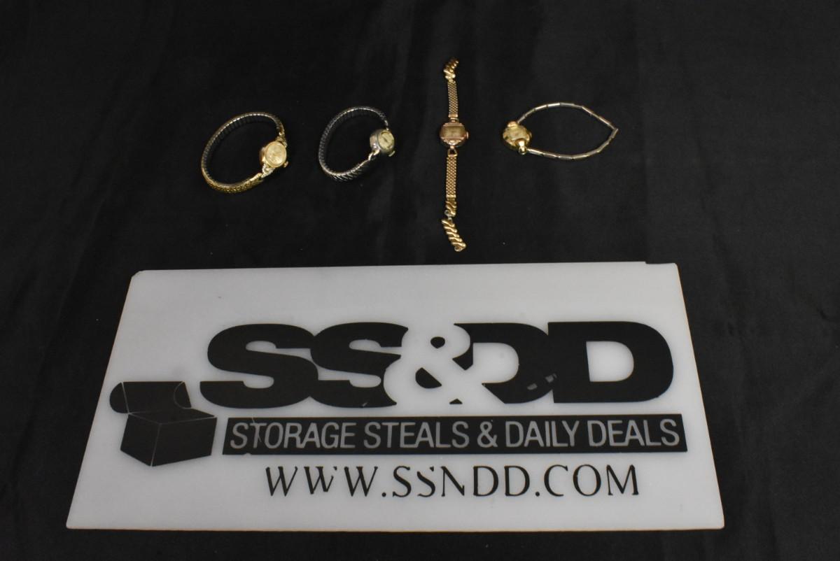 4 Vintage Ladies Watches, Costume Jewelry - Landau, Helbros, Baroness & Gruen (Missing link)