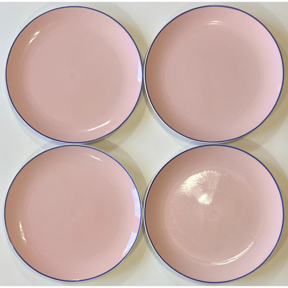 4 Vintage Lenox Domino Technic Dinner Plates Pink Blue Microwave Dishwasher Safe