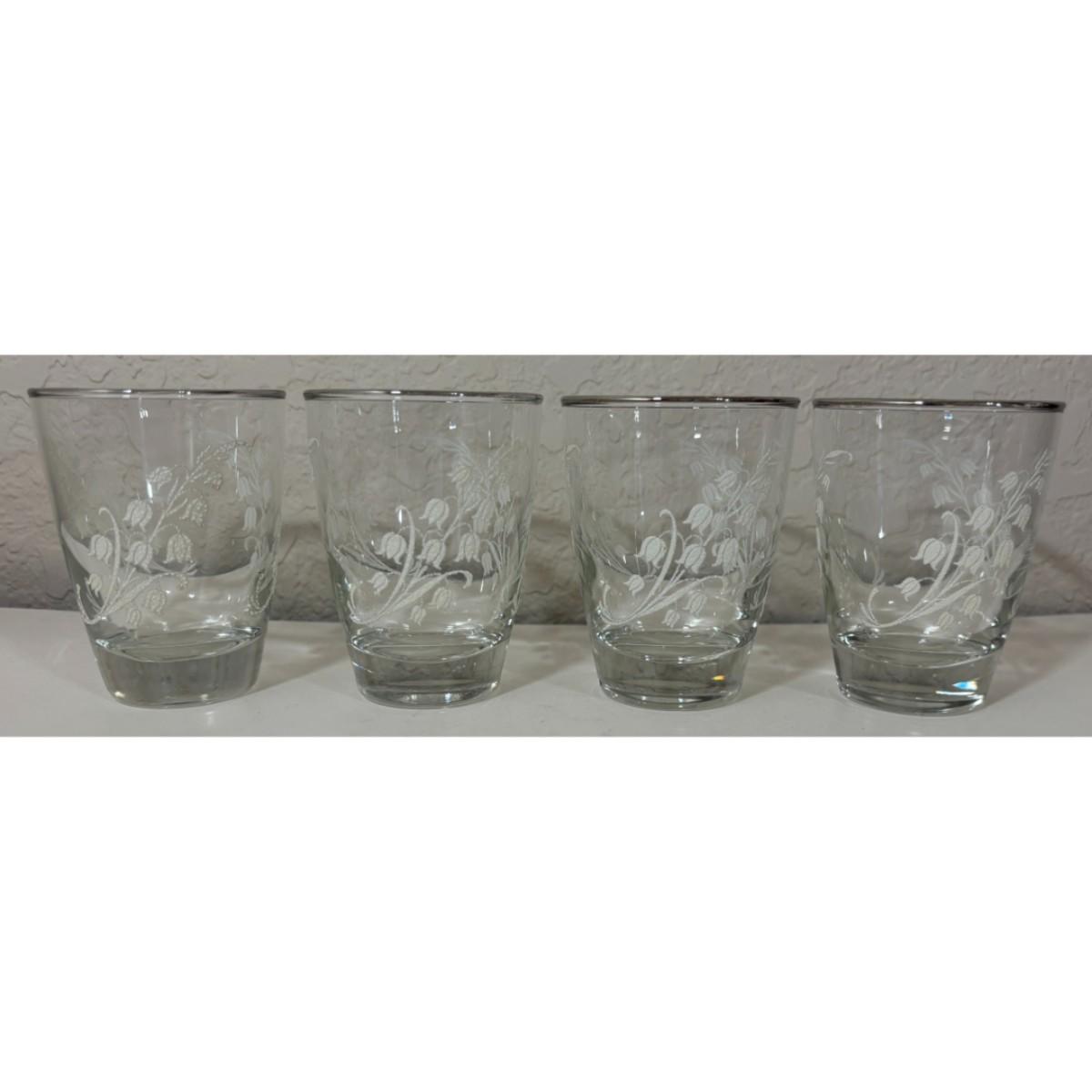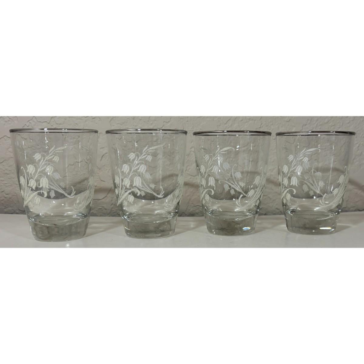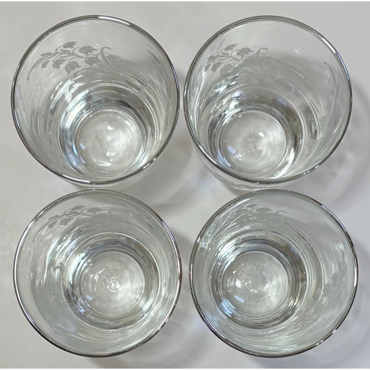 4 Vintage Libbey Mini Glass Tumblers Raised Tulips Silver Trim