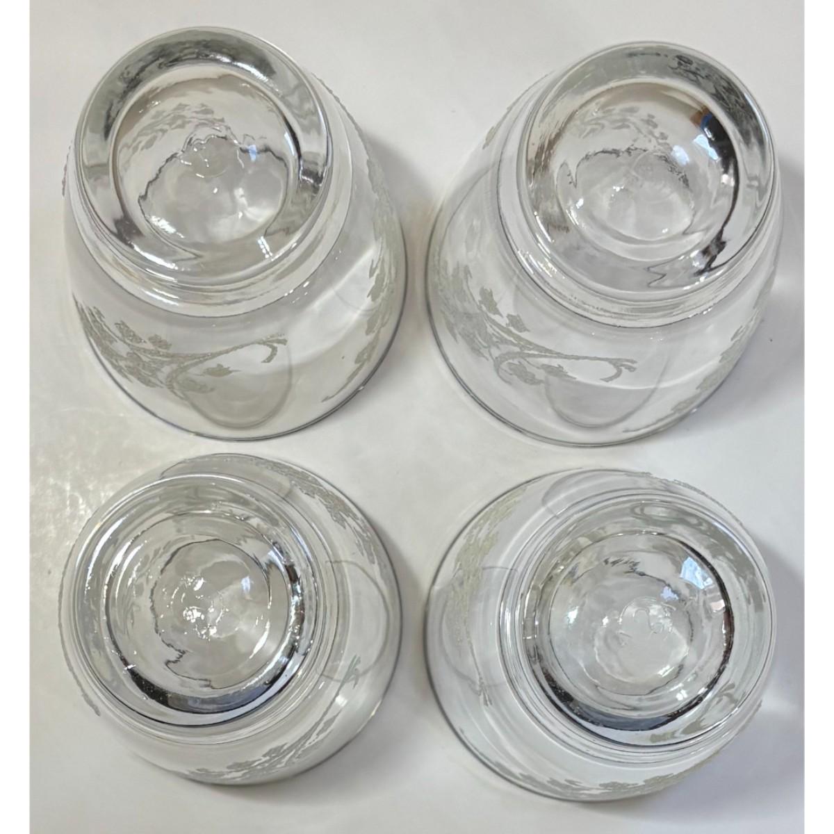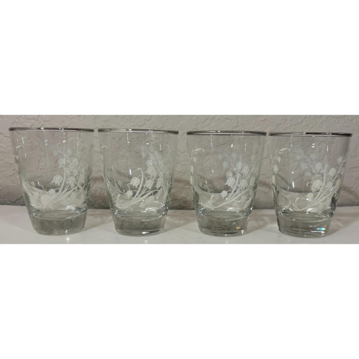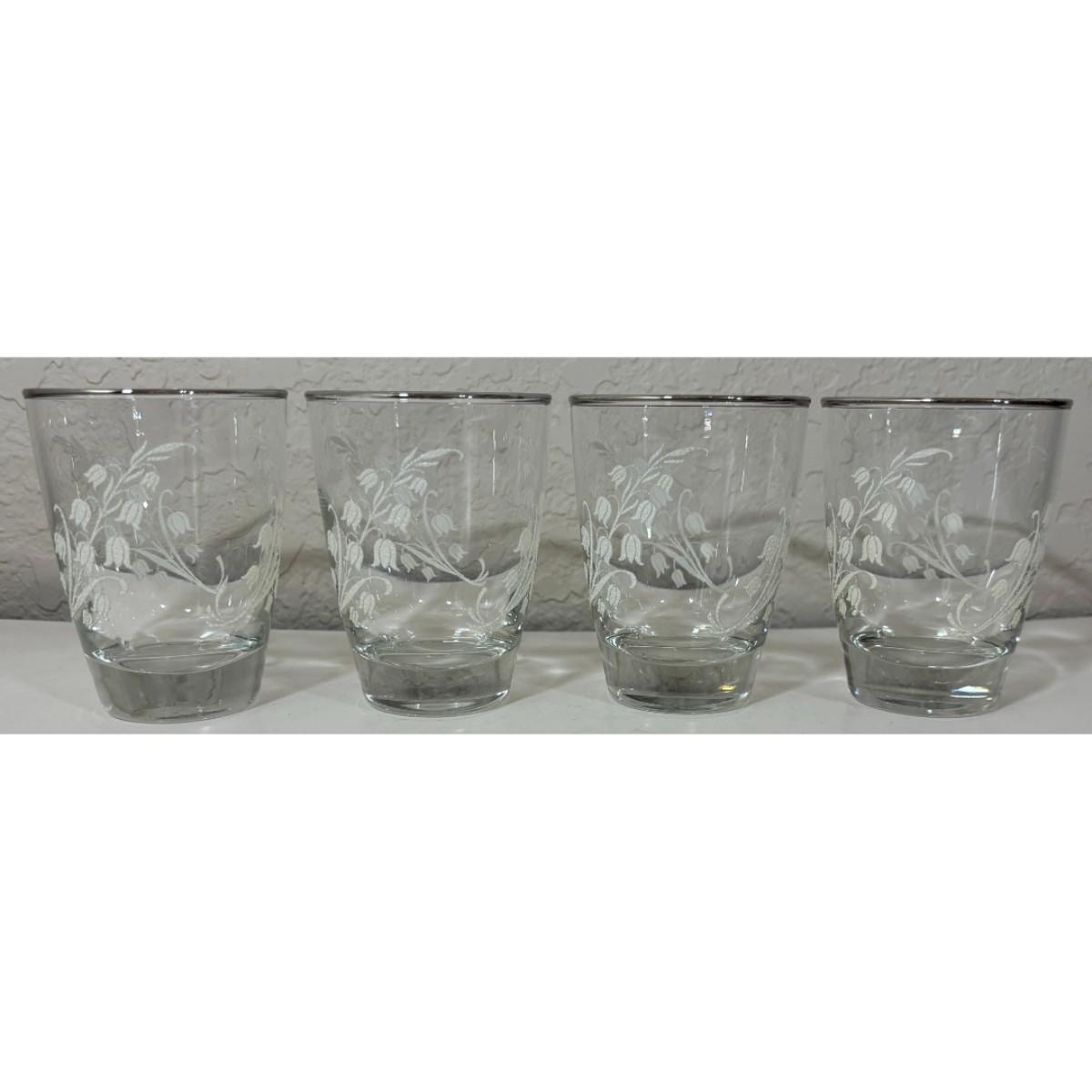 4 Vintage Libbey Mini Glass Tumblers Raised Tulips Silver Trim