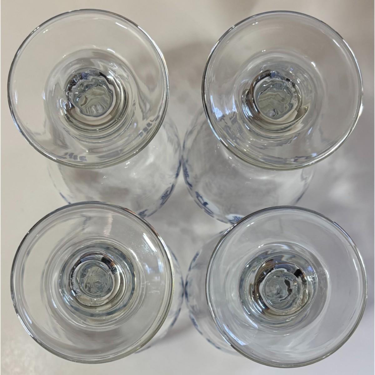 You get four glasses that are in good condition with minor surface wear. Each glass has an approximately 2 7/8" diameter at the base, 3 1/8" diameter at the rim, and stands roughly 7" tall. Please see all pictures. Thank you for looking. As a reminder, if this is a lot, we do not break up lots. Also, all items are prepacked, so each item is sent individually. Any item that qualifies for media mail and weighs over one pound will be shipped via media mail. Otherwise, the item will be shipped USPS ground advantage, or UPS ground. Shipping for this item is $13.00. Items ship within two days after payment is received. Item SKU is MUG310.