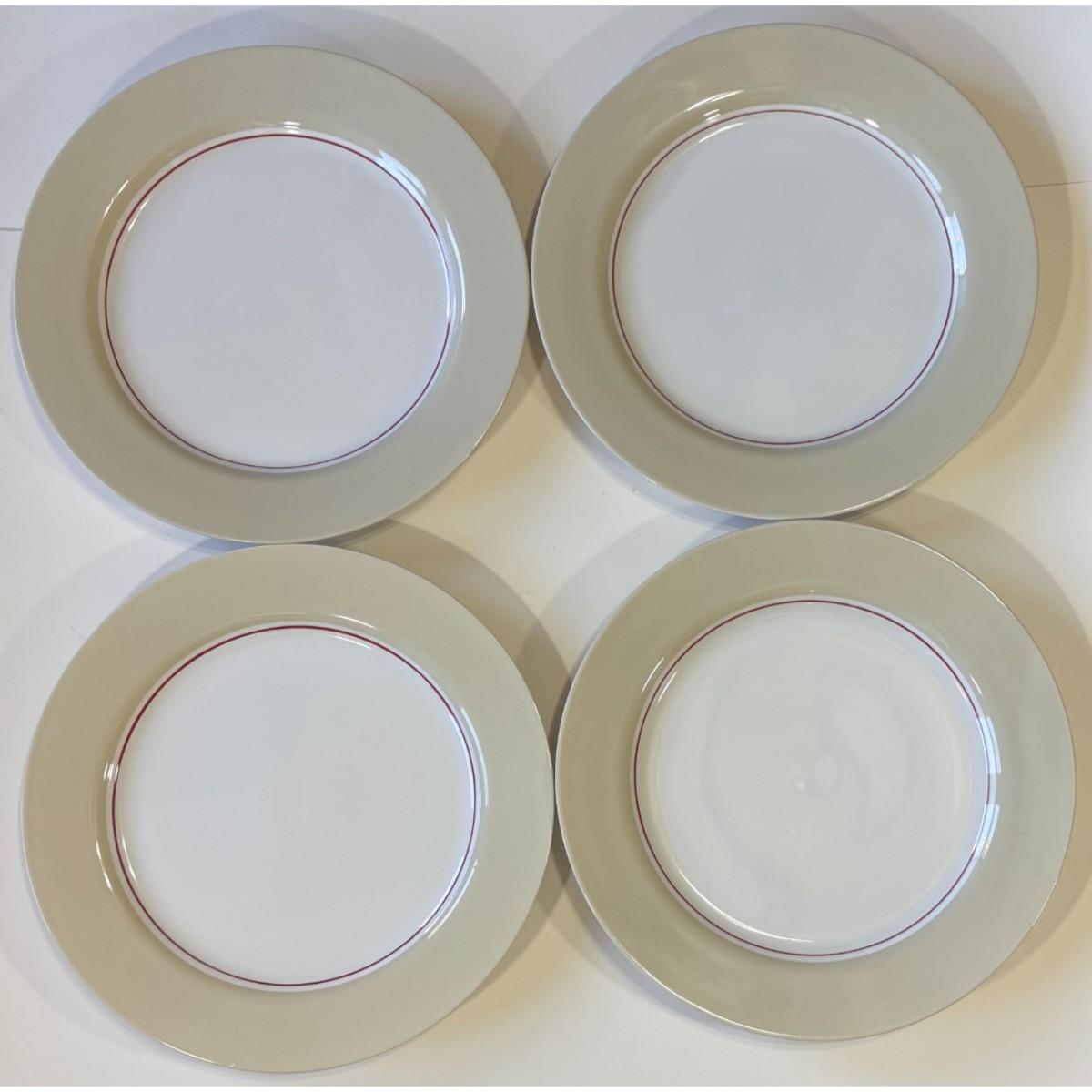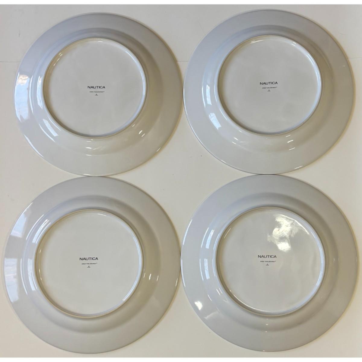 4 Vintage Nautica Tablewares Crew Deck Red Dinner Plates China Beige White