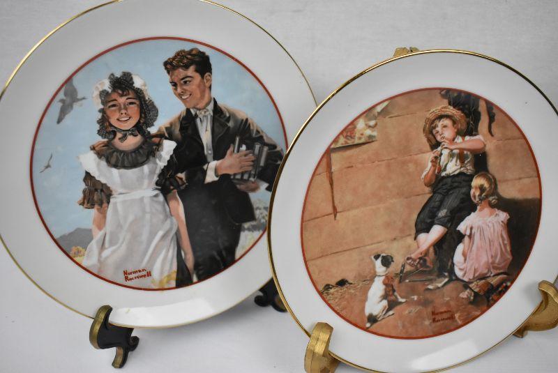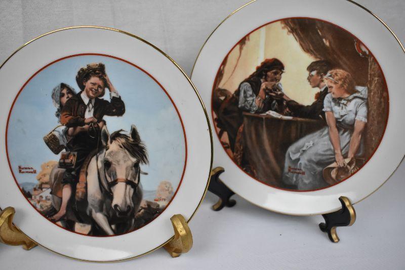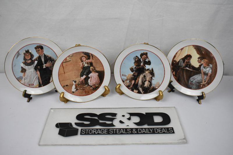 4 Vintage Norman Rockwell Plates, 1982 Young Love Series with Plate Stands
