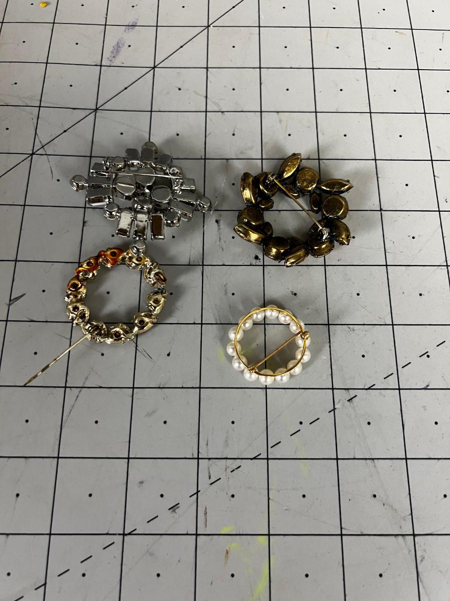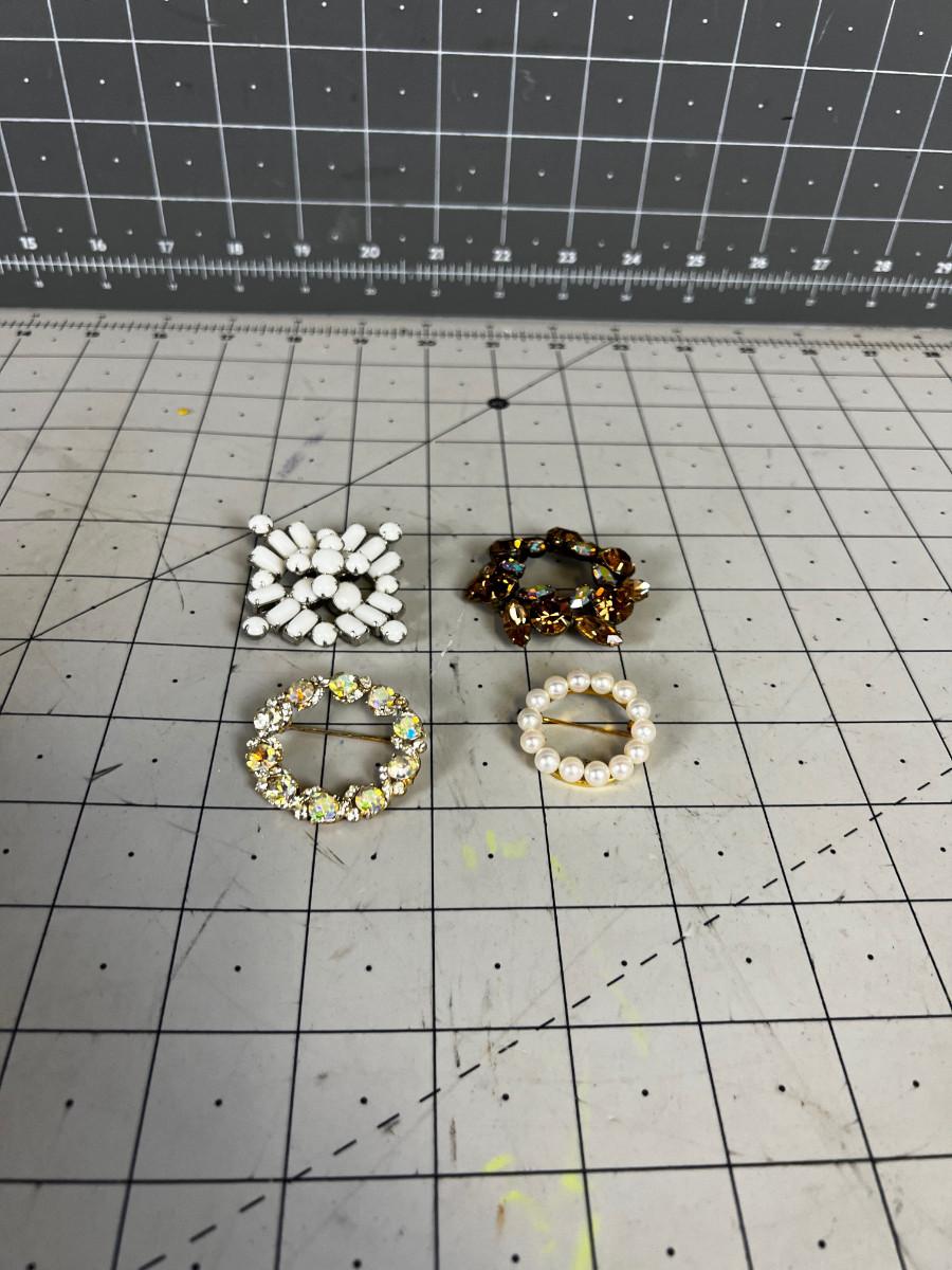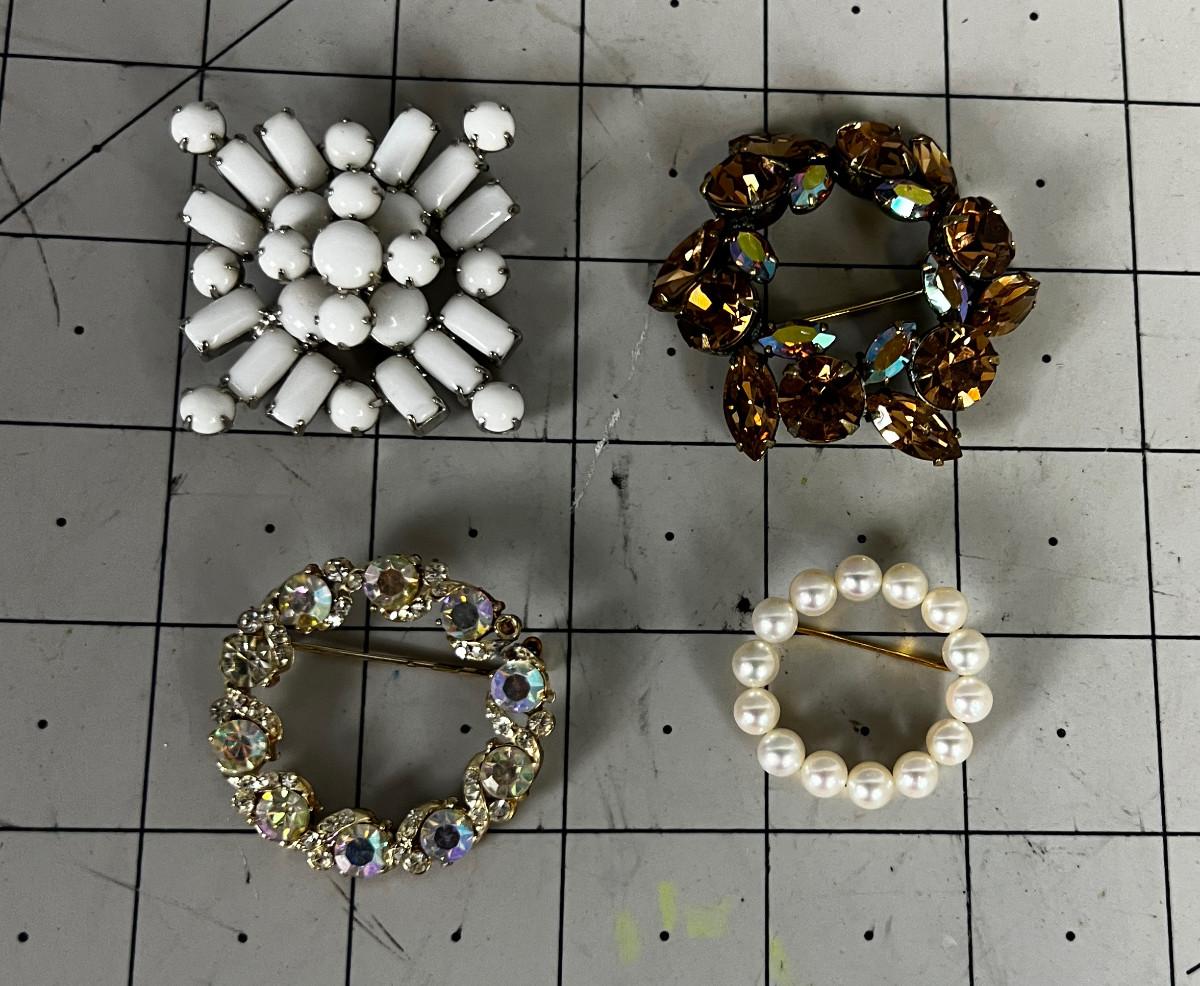 4 Vintage Pins: White, Pearl and Rhinestone