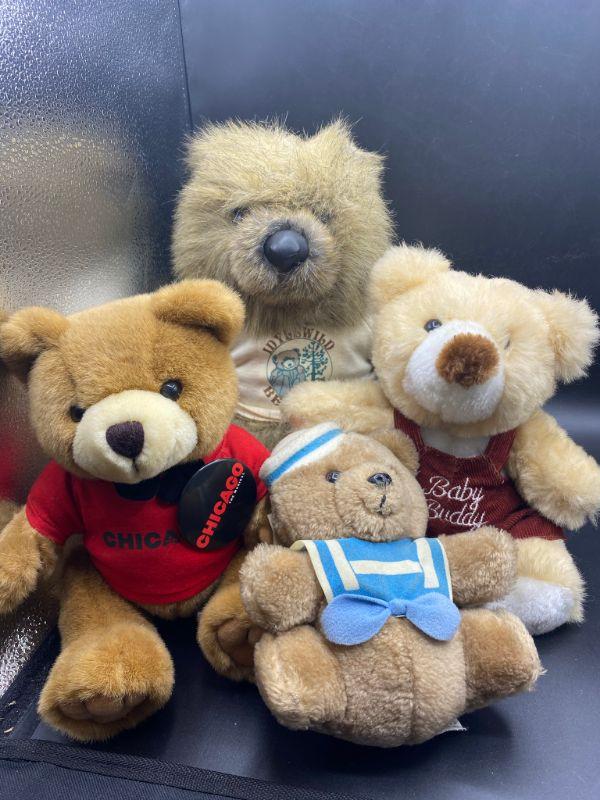 4 vintage plush teddy bears. A little dusty from display. Great additions to a bear collection.