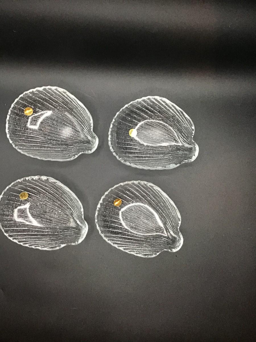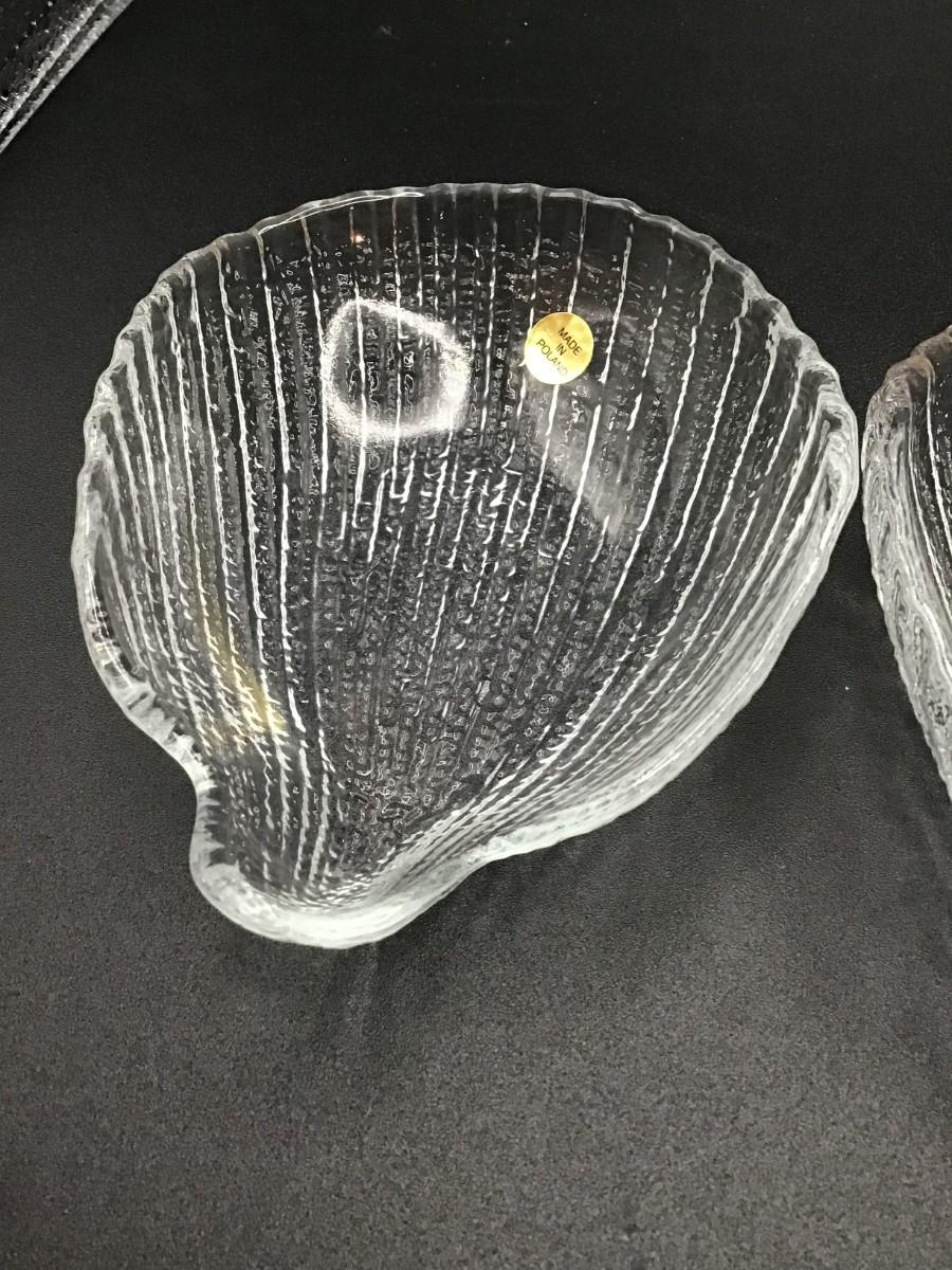 4 Vintage Polish Shell Clear Textured Glass Candy/Nut/Trinket Dishes
