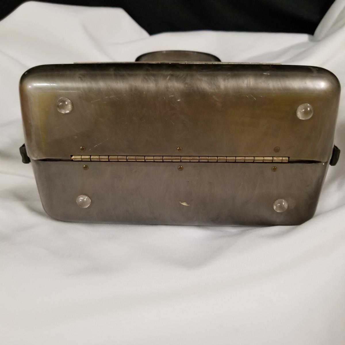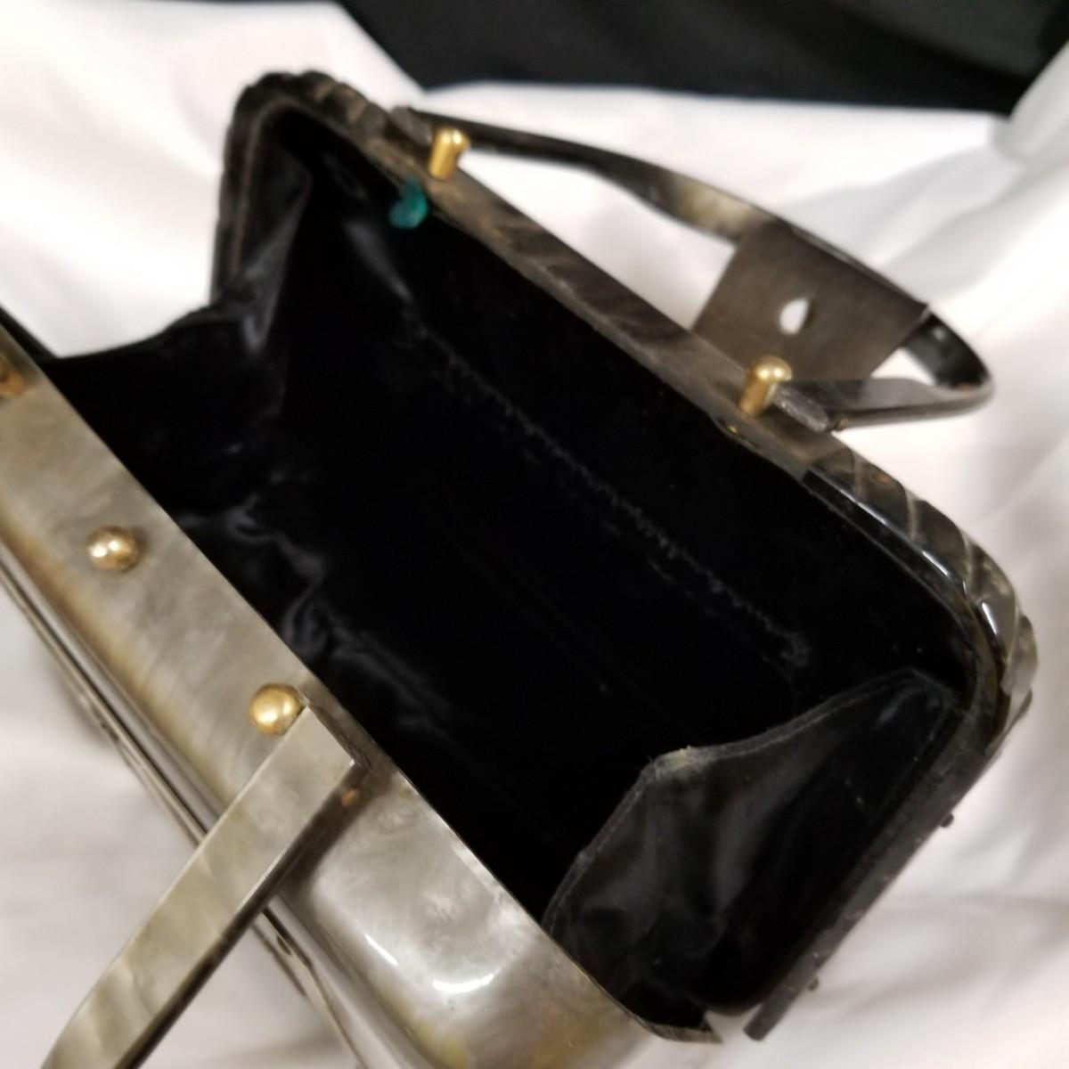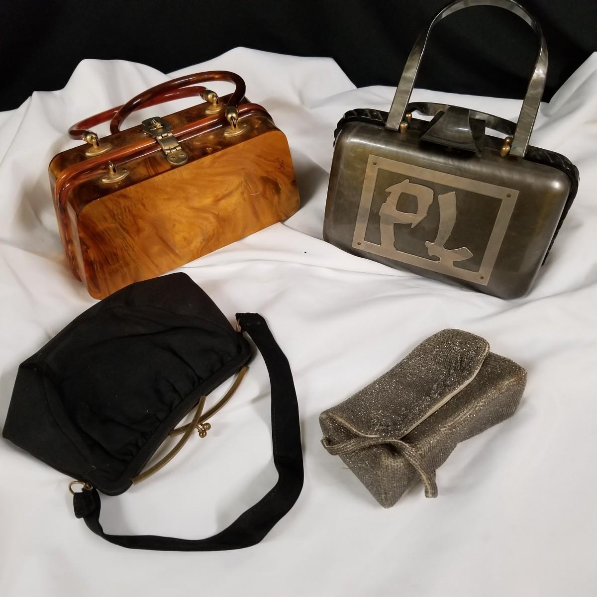 A nice collection of purses and styles. Items by Stylecraft of Miami, PL and Richie by Walberg. Small grey purse is beaded all over outside. Gold acrylic item has broken handle, but othervitems in good shape. Black purse with crossover handle has interior attached coin purse. Gray PL item has all hardshell case. See photos for details. Shipping available.
