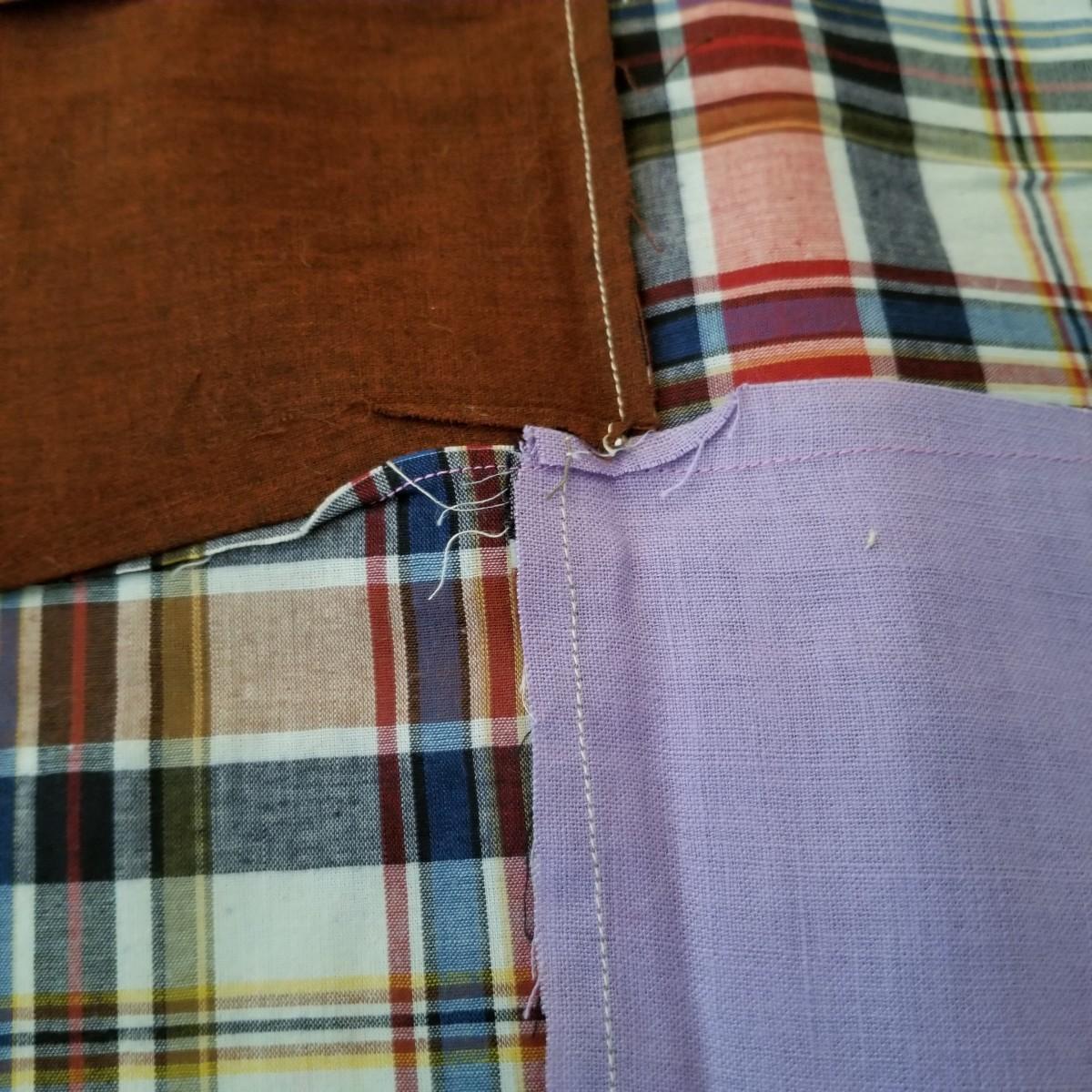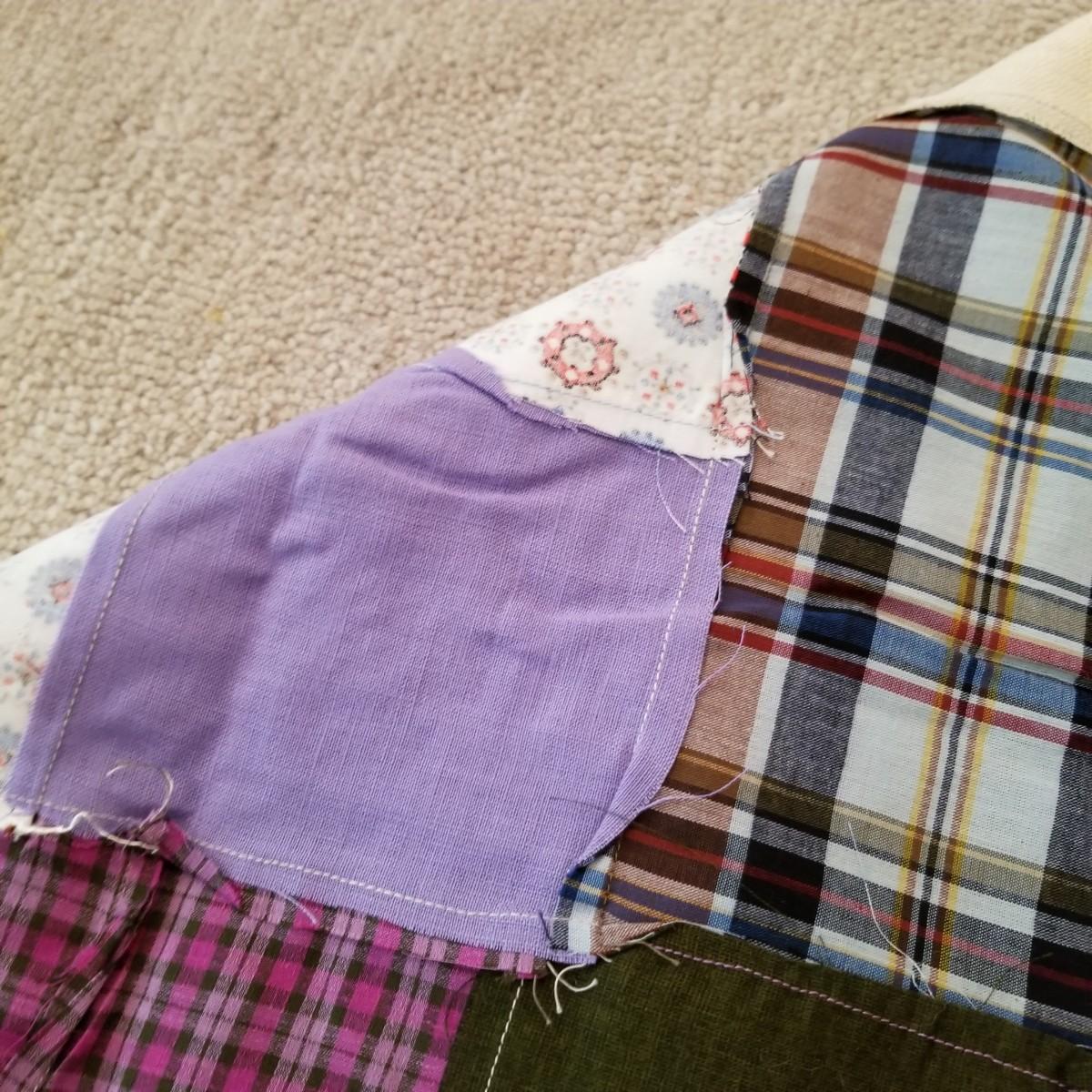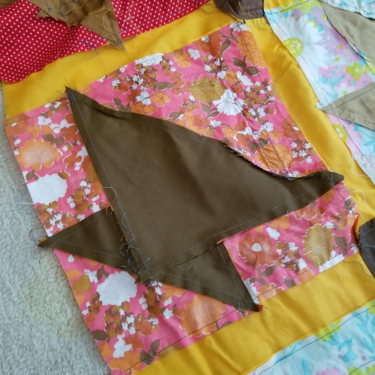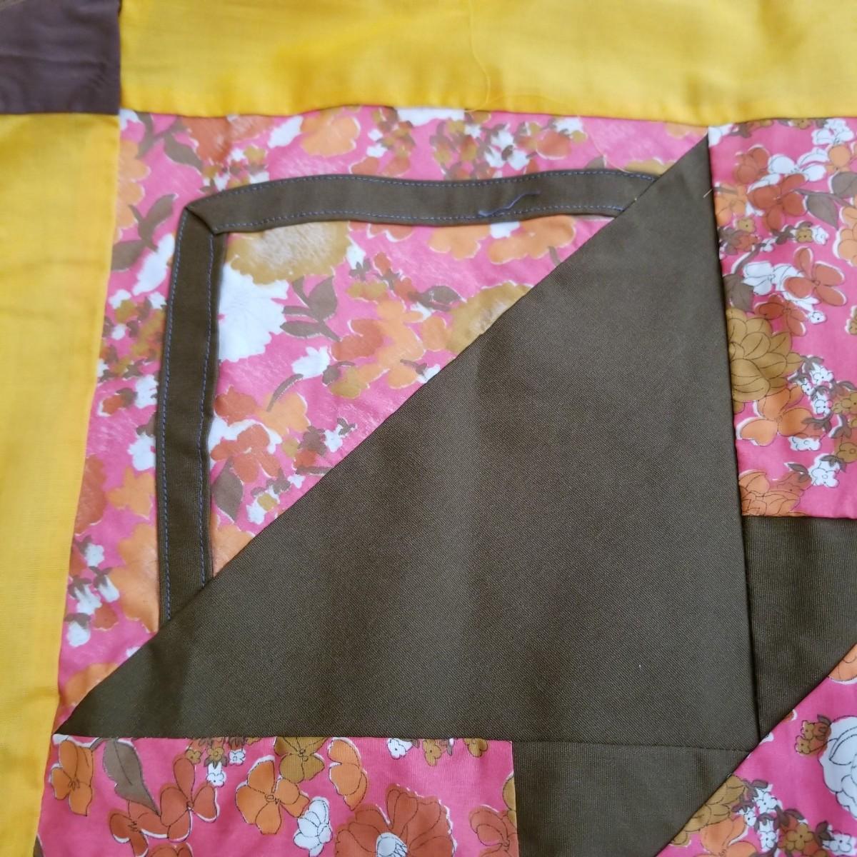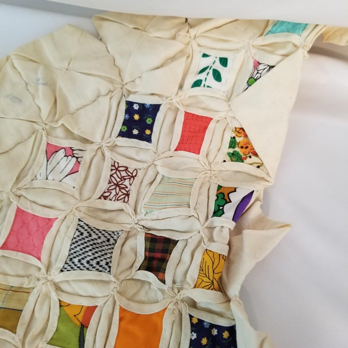 One finished and three unfinished quilts and tops. The finished piece, 'Crazy Quilt' style, has a maroon satin back and measures 74" x 62". The other three pieces are completed tops that need finishing. Purple crosslines, 84" x 74". Diagonal pattern is 83" x 73". And the square pattern is 70" x 82". One traditional basket style quilt top, 72" x72".  One triangular pieced shawl or wall hanger, 48"x25". See photos for detail.  Shipping available.