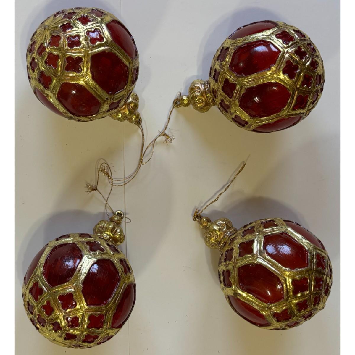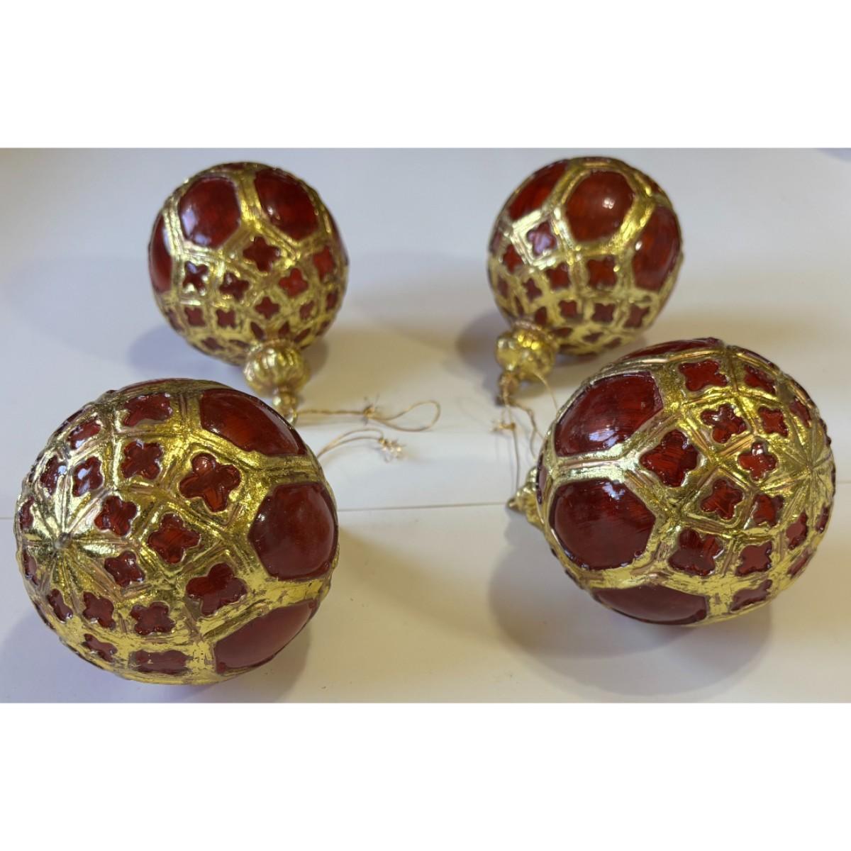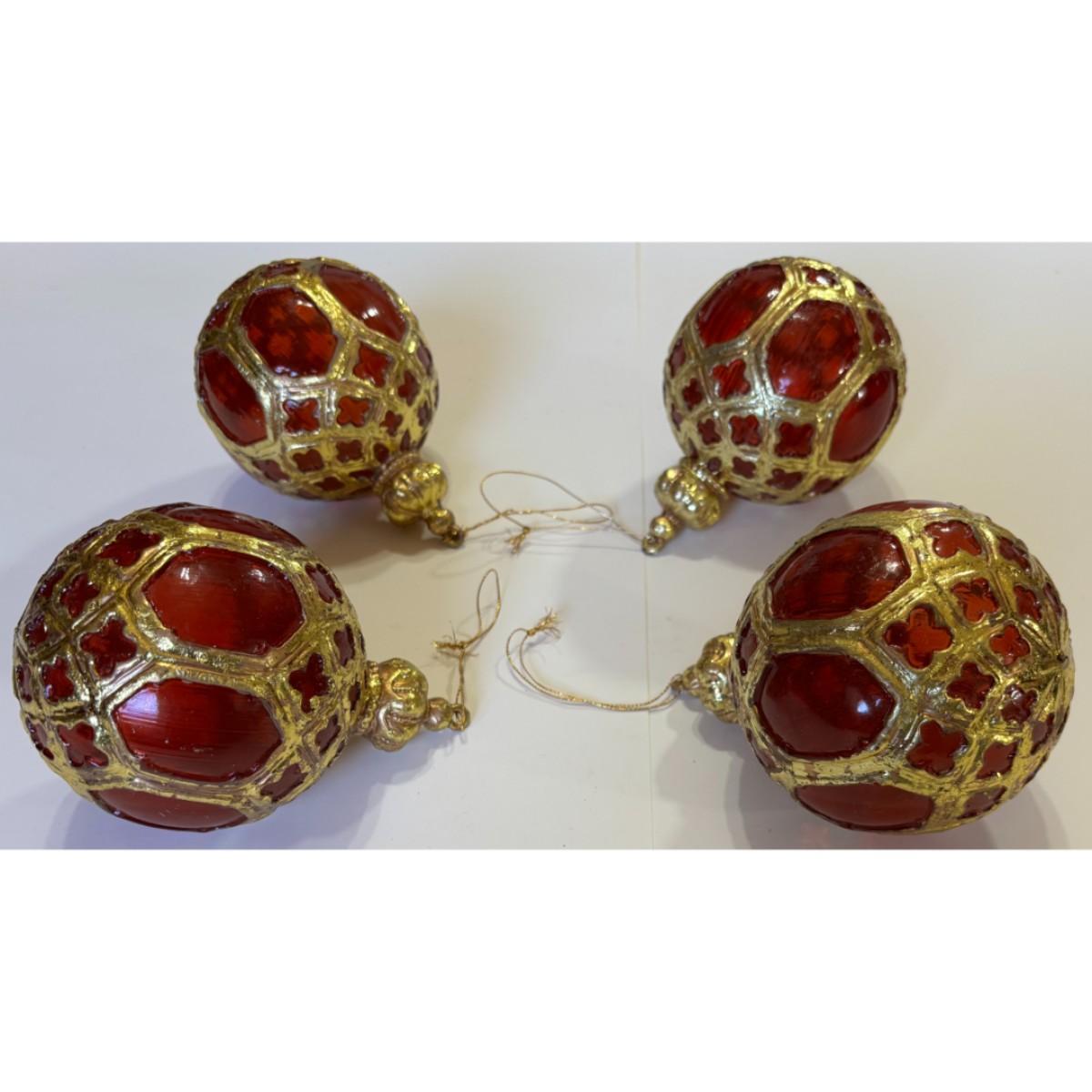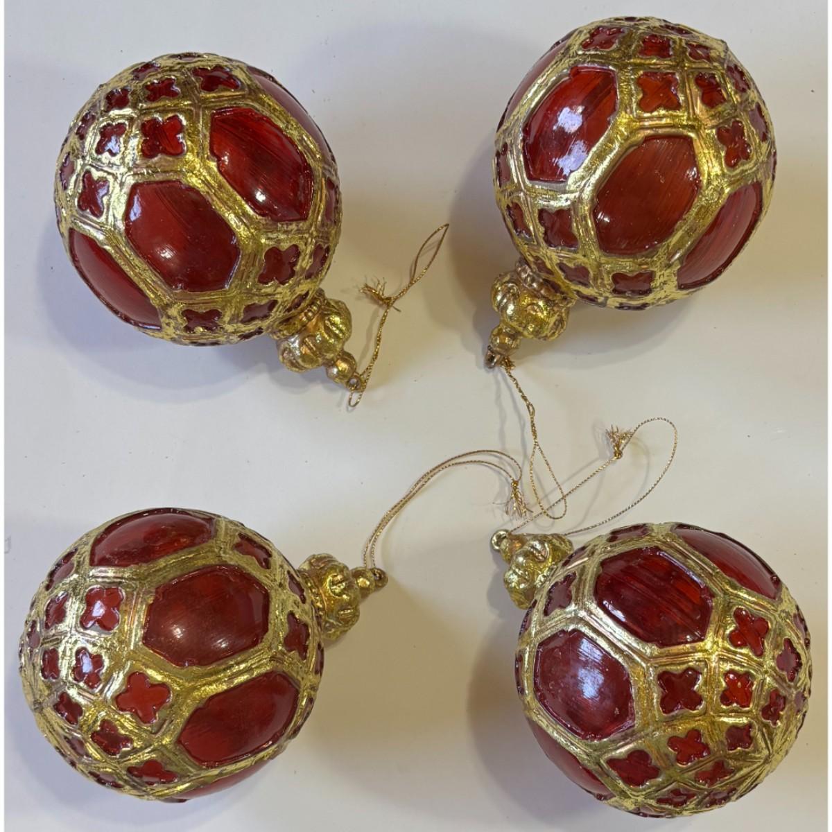 You get four plastic ornaments that are in good condition with minor surface wear. They are slightly bigger than a baseball, yet smaller than a softball. The ornaments come complete with string attached, so they are ready to hang. Please see all pictures. Thank you for looking. As a reminder, if this is a lot, we do not break up lots. Also, all items are prepacked, so each item is sent individually. Any item that qualifies for media mail and weighs over one pound will be shipped via media mail. Otherwise, the item will be shipped USPS ground advantage, or UPS ground. Shipping for this item is $10.00. Items ship within two days after payment is received. Item SKU is OTH1291.