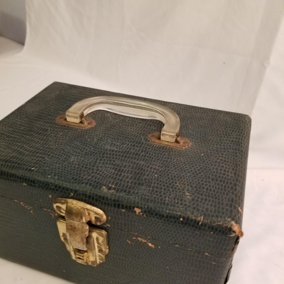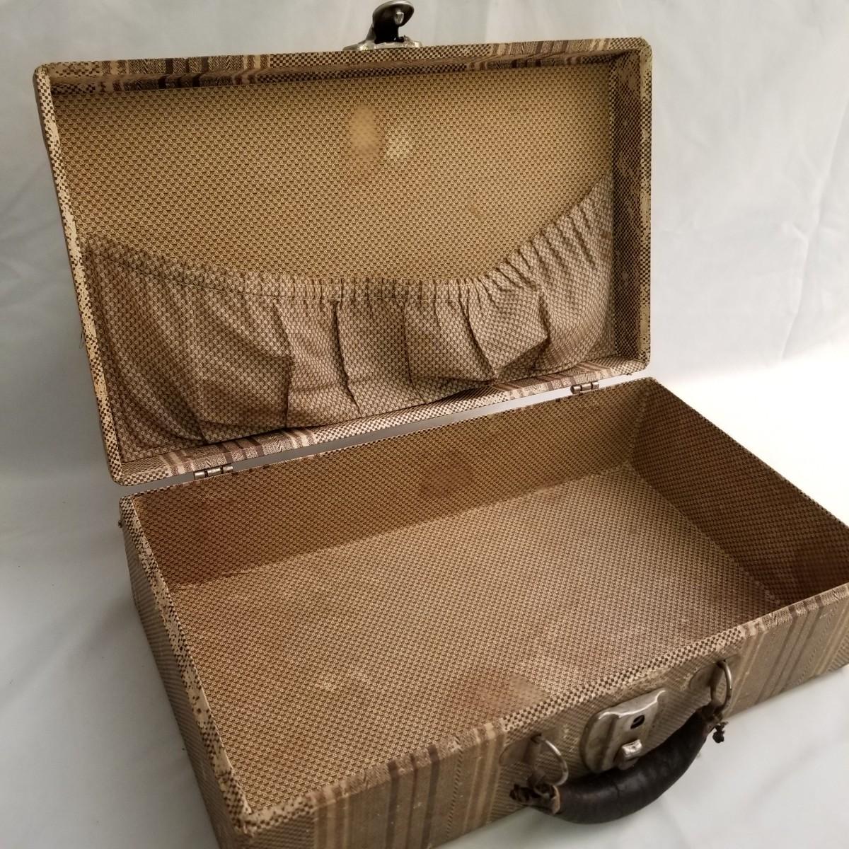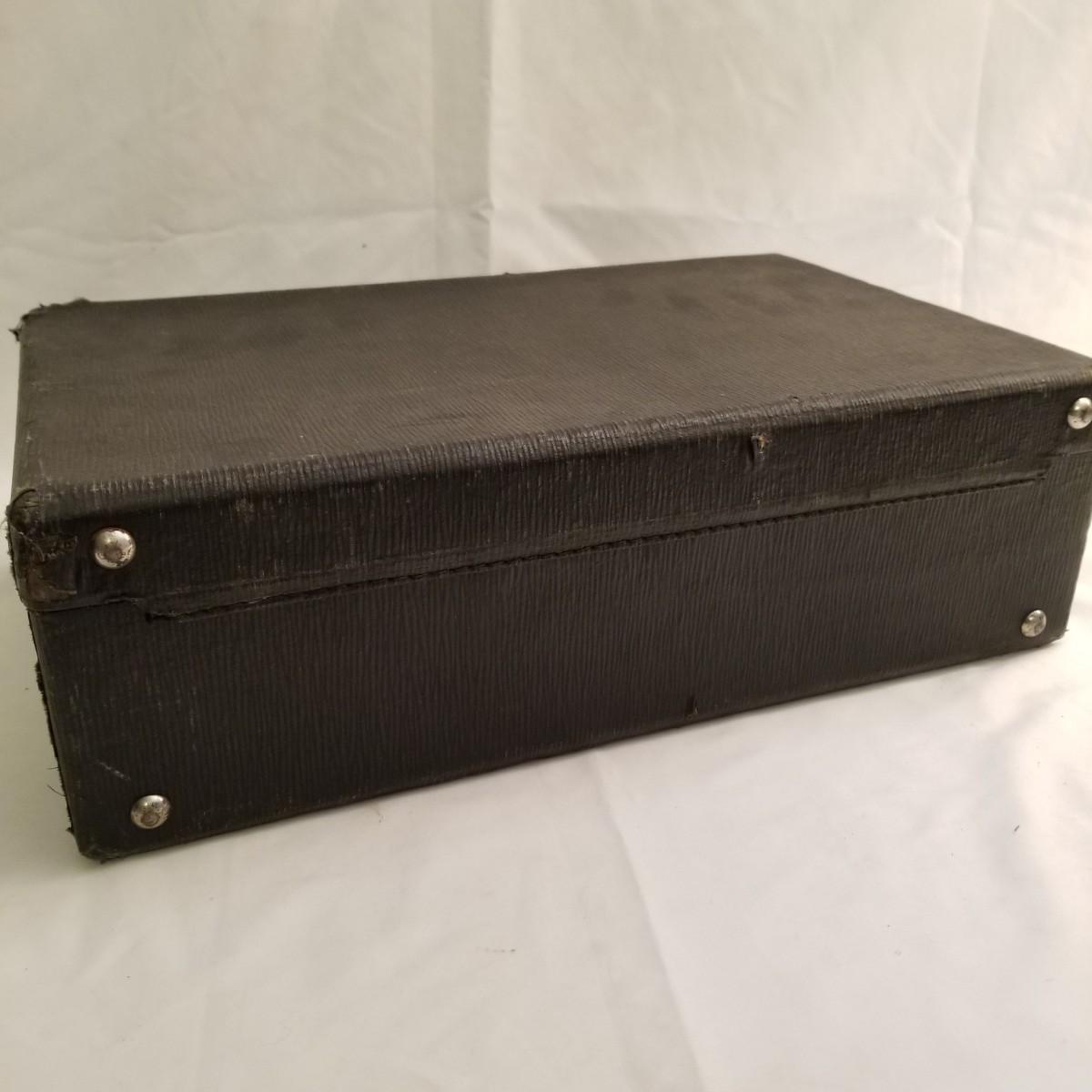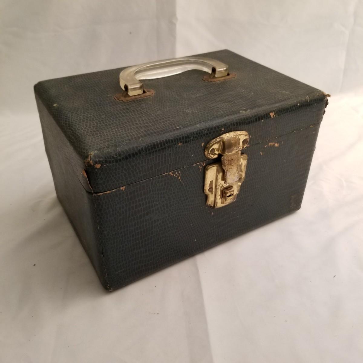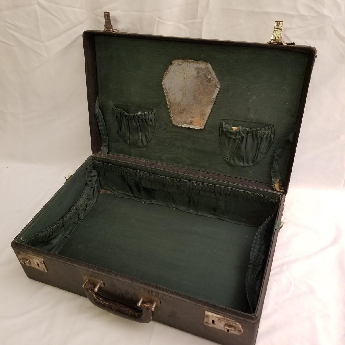 A quartet of smaller suitcase/travel cases. Well worn and used these would make great display pieces for vintage items. Largest black case is 18" x12" x5.5". All handles intact and all latches work, but no keys. See photos for details. Shipping available.