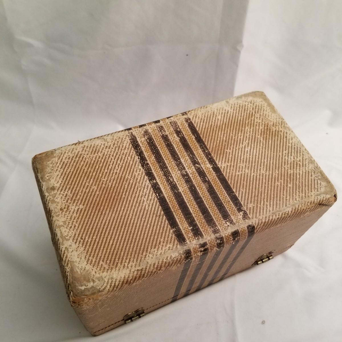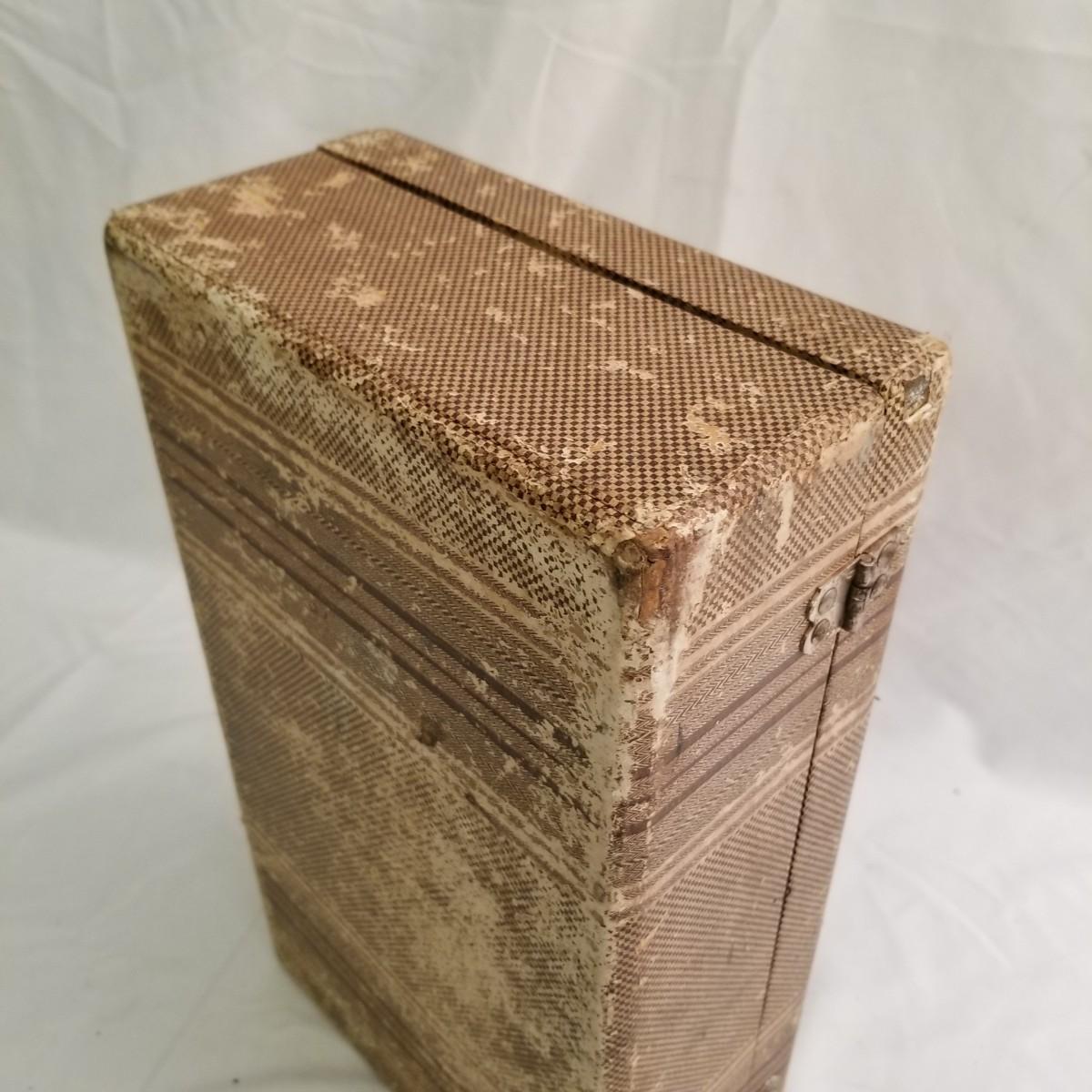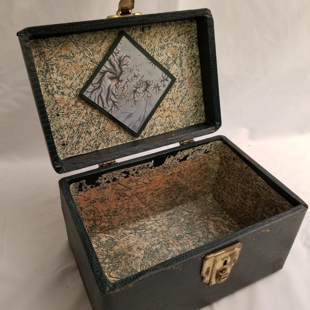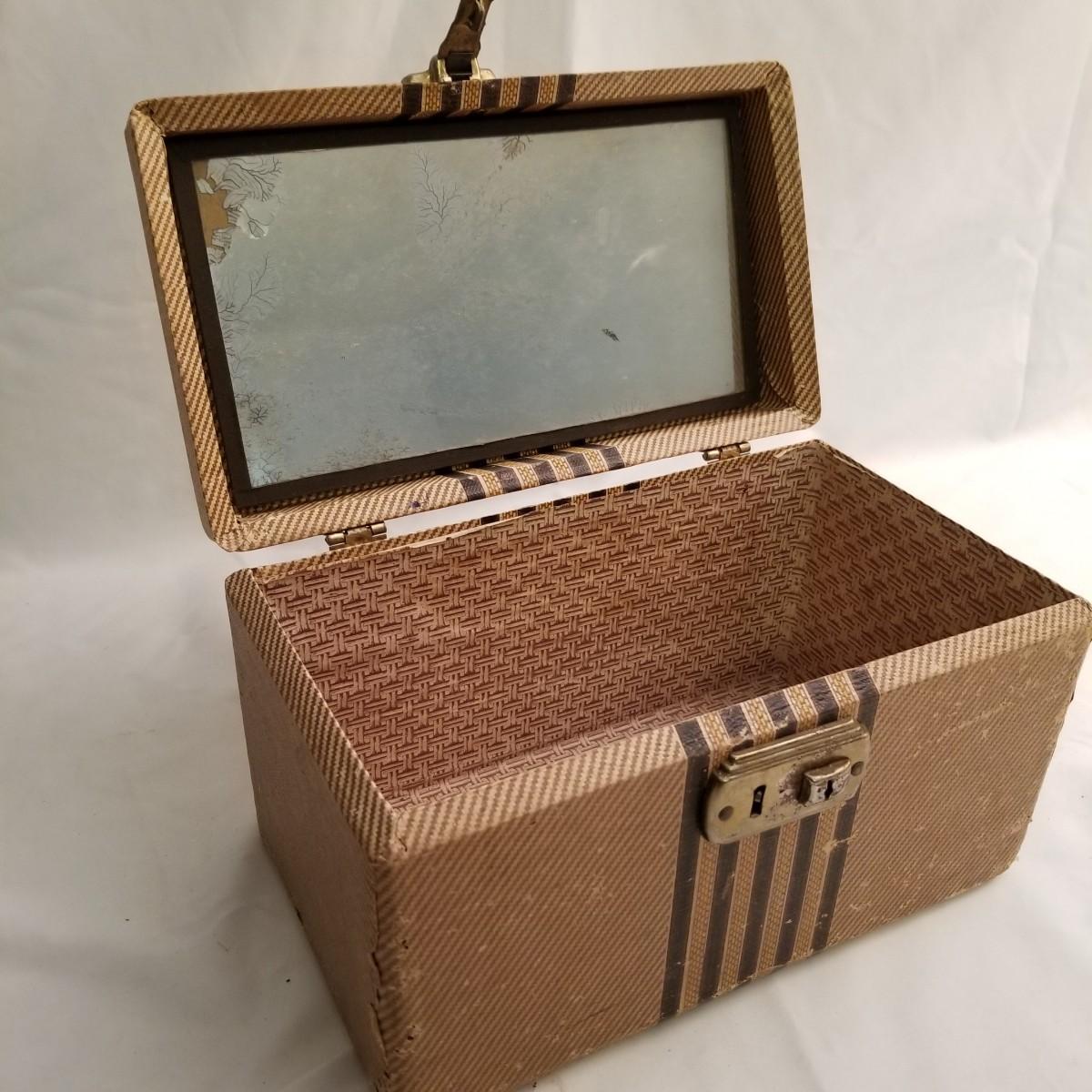 A quartet of smaller suitcase/travel cases. Well worn and used these would make great display pieces for vintage items. Largest black case is 18" x12" x5.5". All handles intact and all latches work, but no keys. See photos for details. Shipping available.