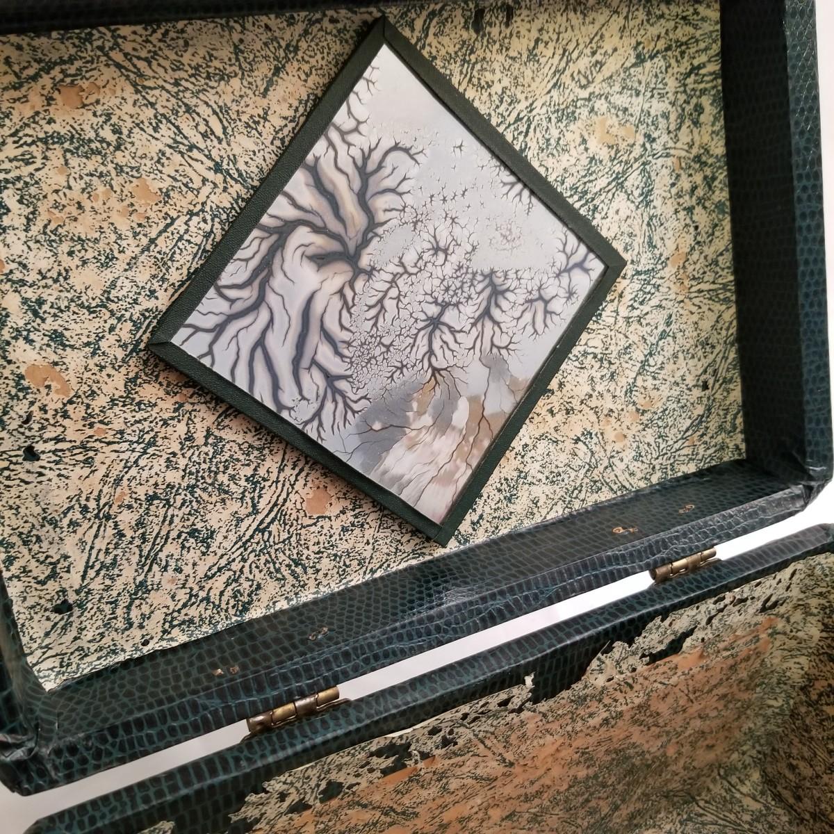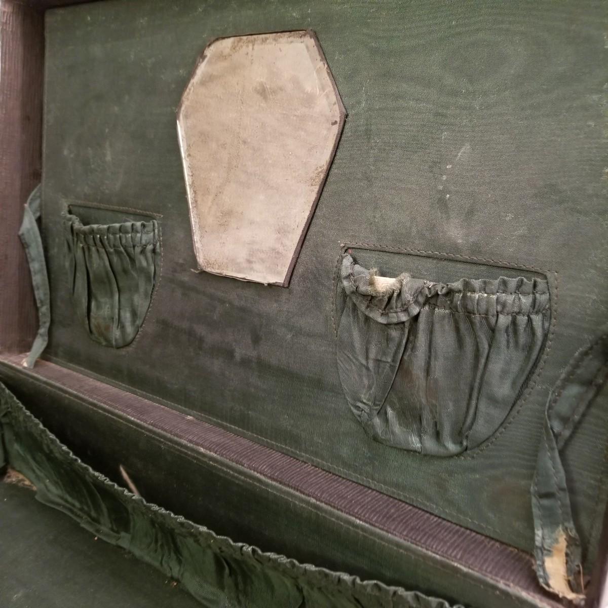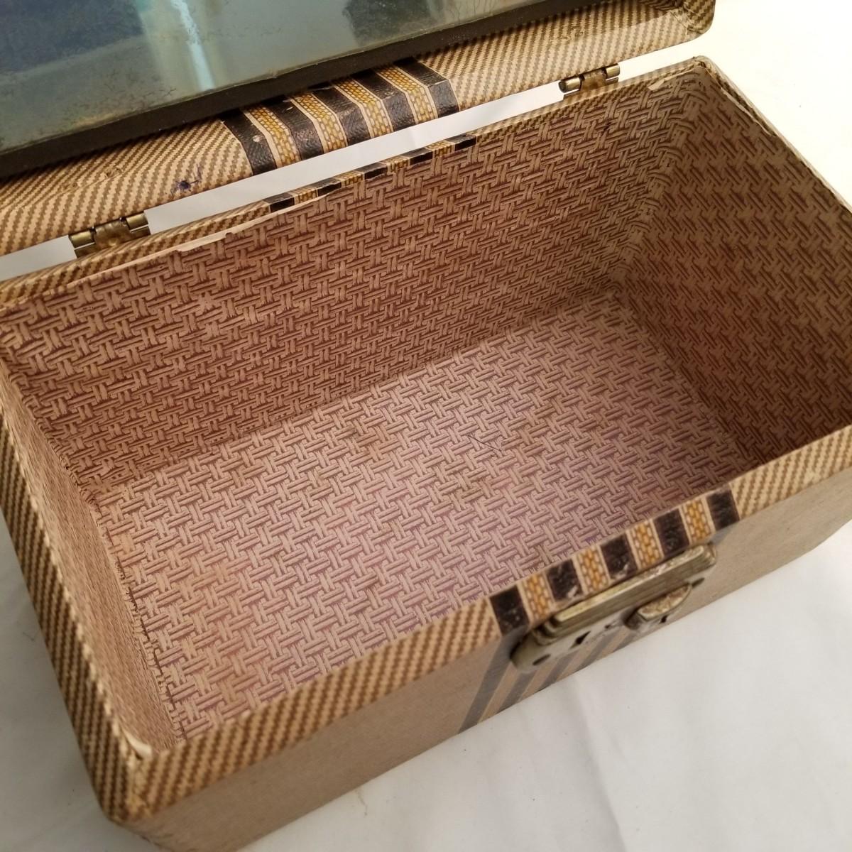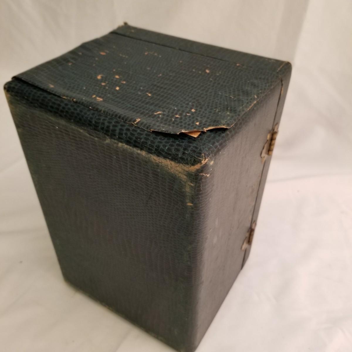 A quartet of smaller suitcase/travel cases. Well worn and used these would make great display pieces for vintage items. Largest black case is 18" x12" x5.5". All handles intact and all latches work, but no keys. See photos for details. Shipping available.