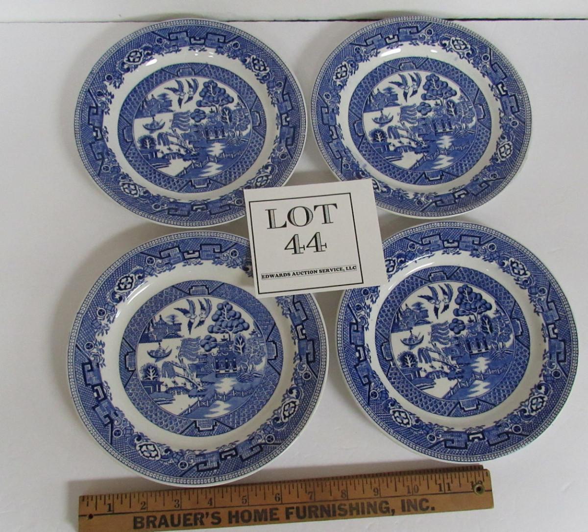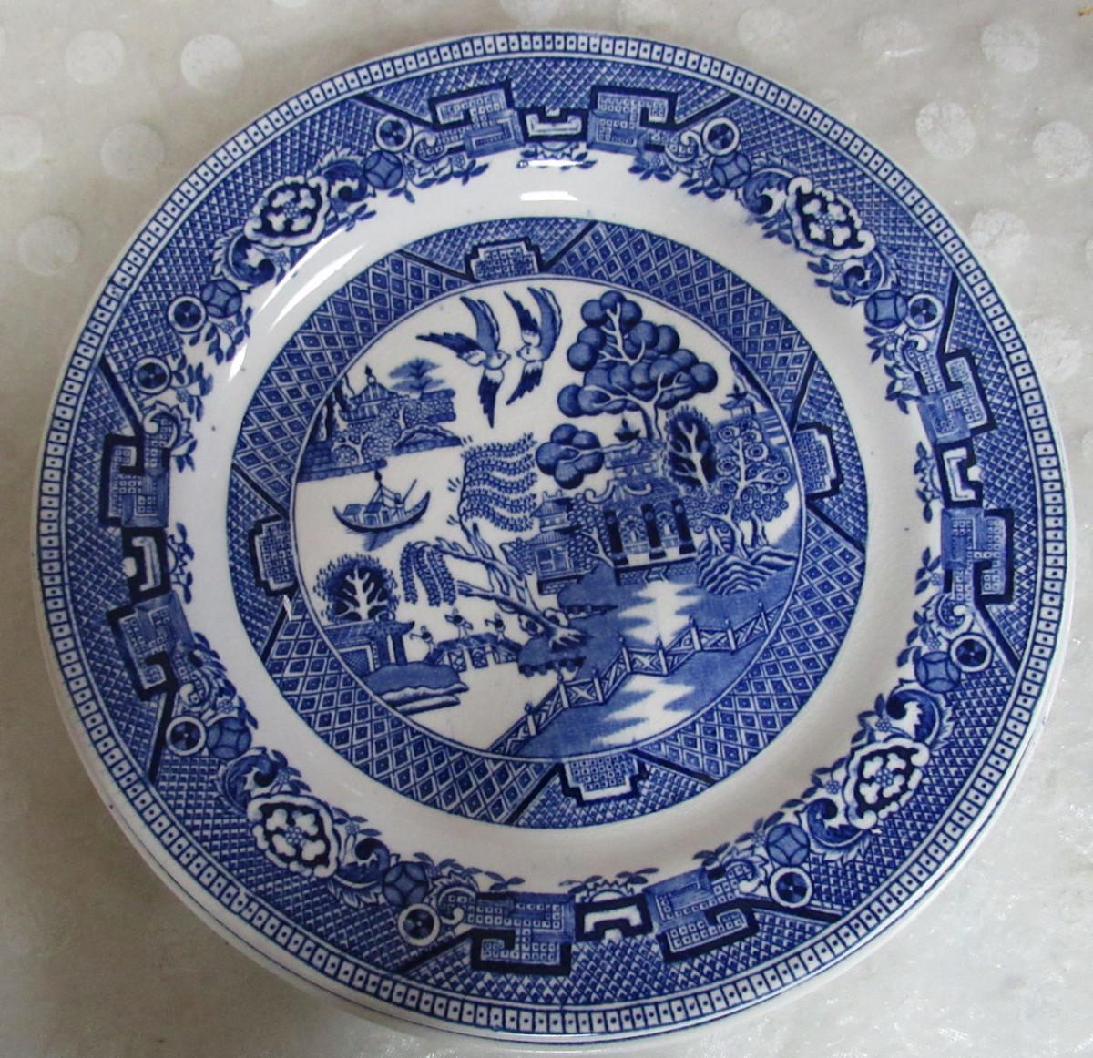 4 Vintage W. Ridgeway England Semi China Blue Willow Plates