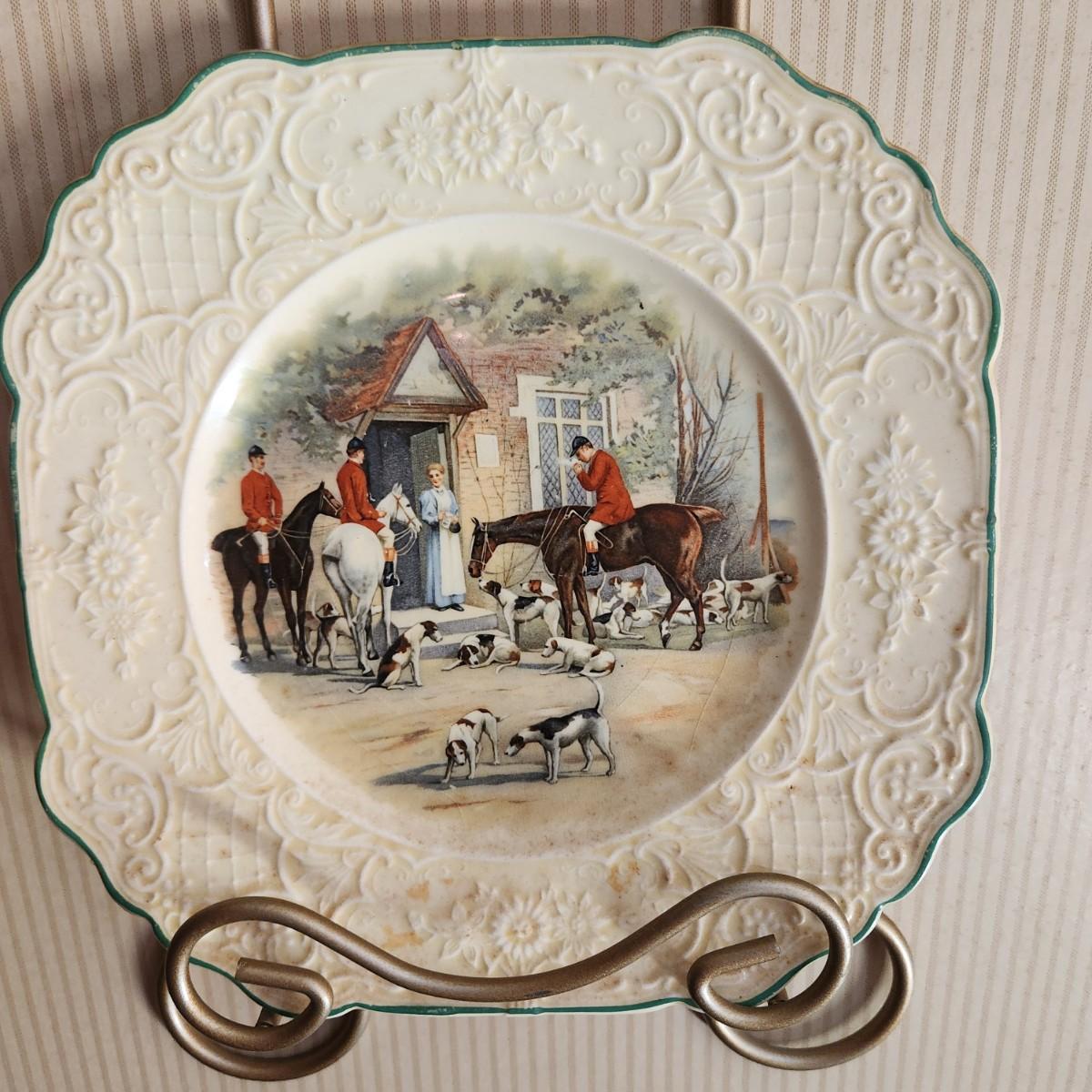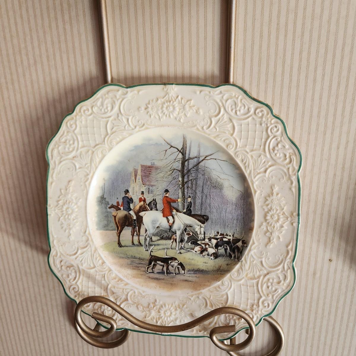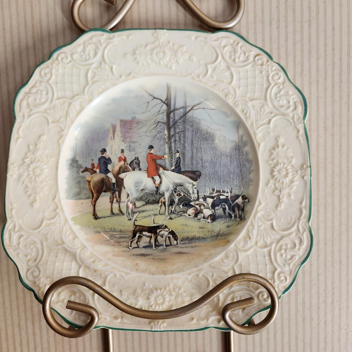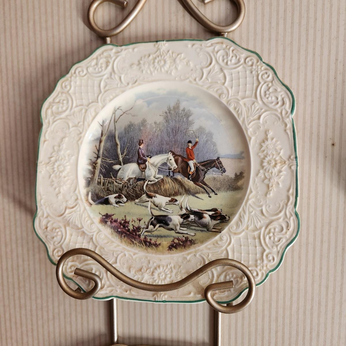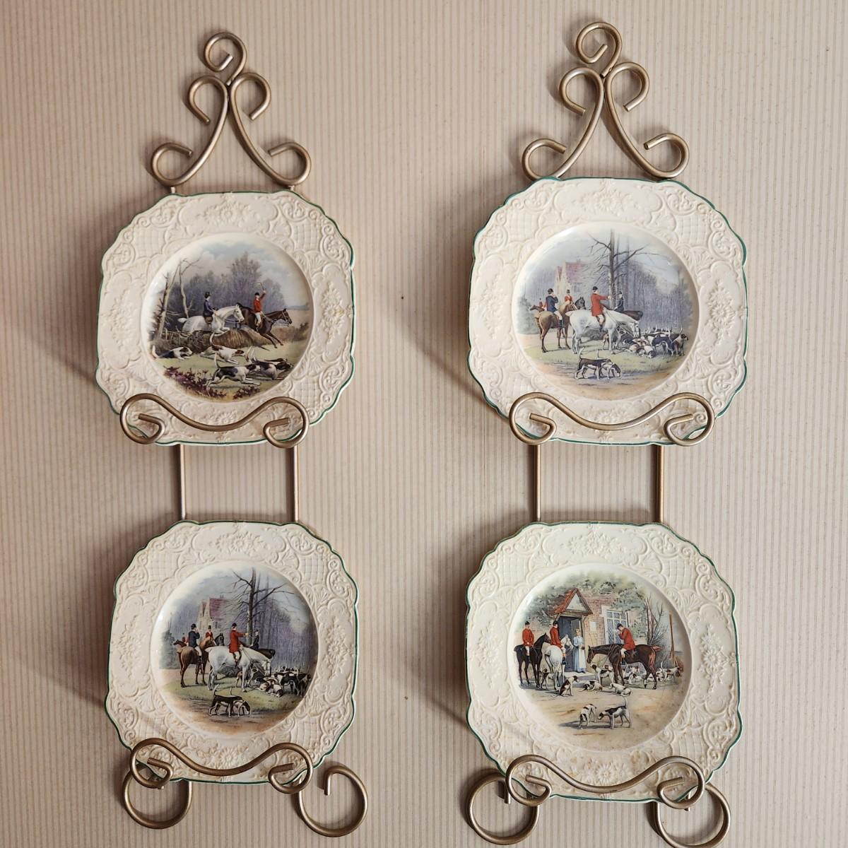 4 Wedgwood England Plates w Wall Holder Hunting Horses