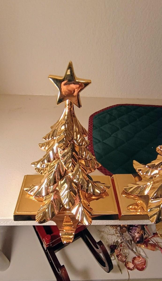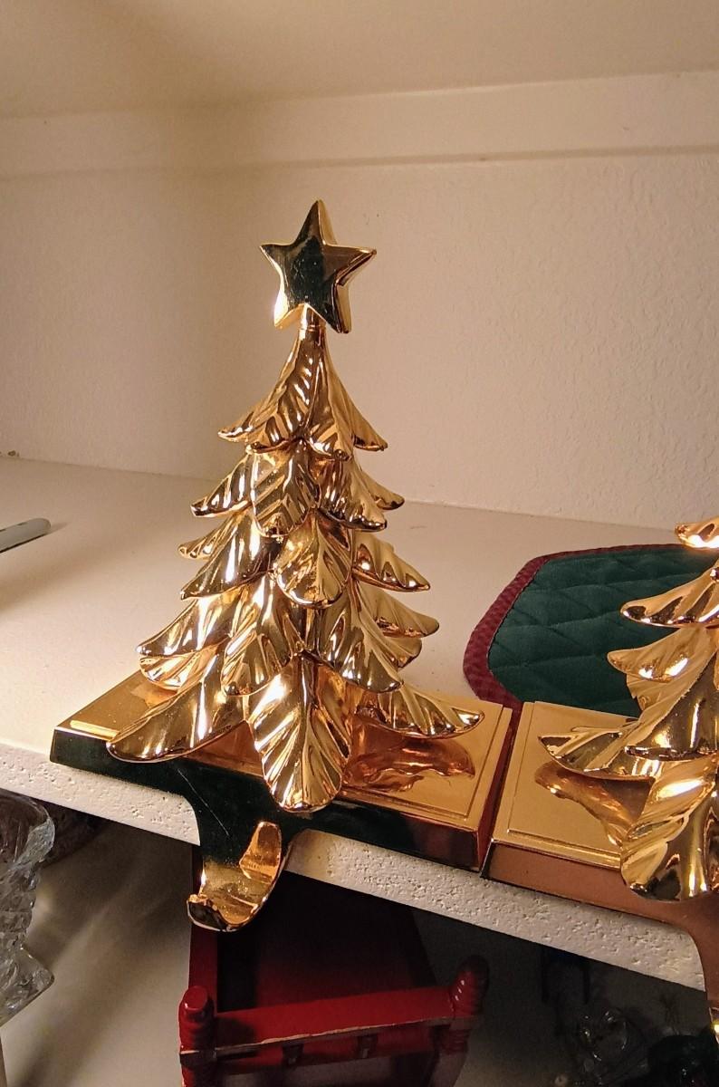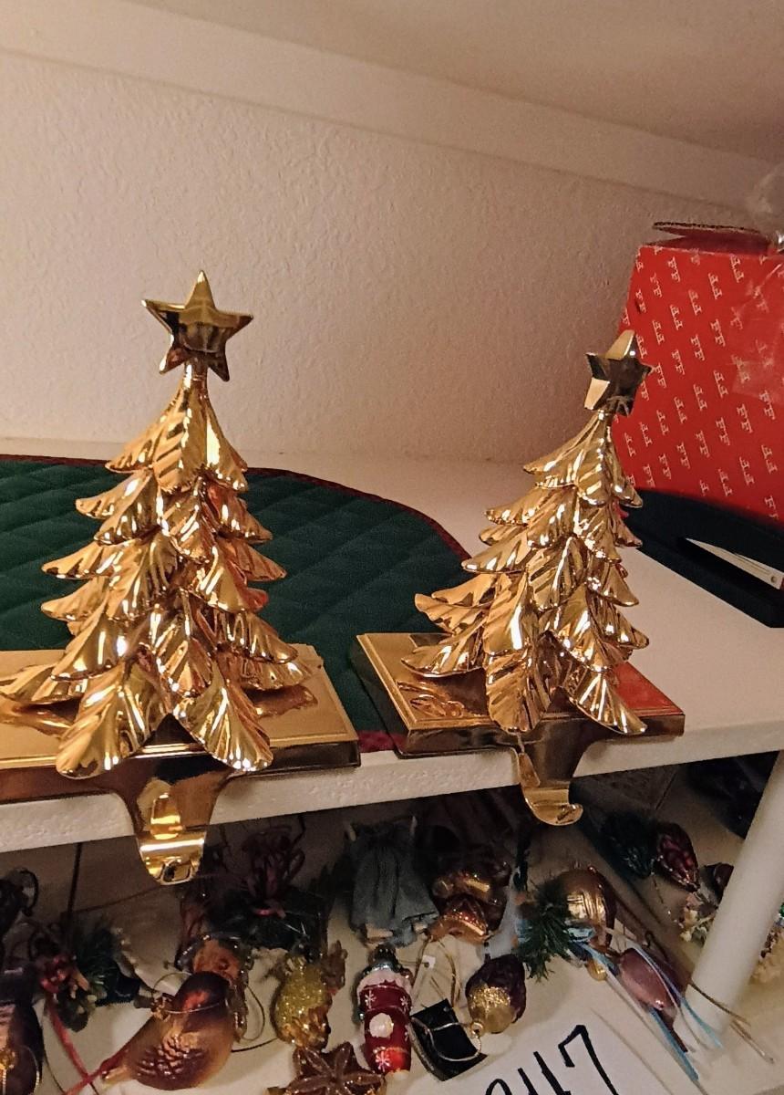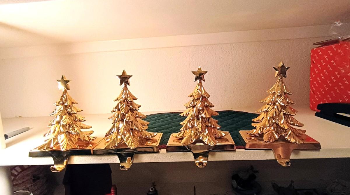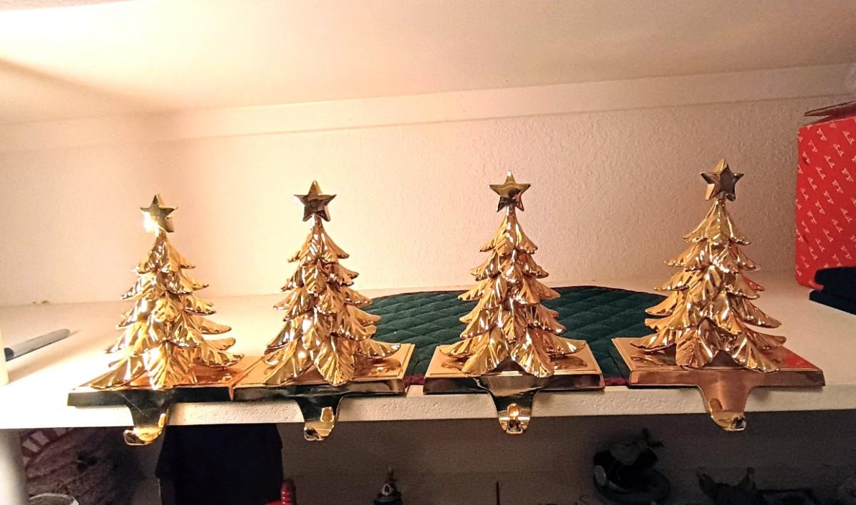 4 WEIGHTED BRASS CHRISTMAS STOCKING HOLDERS