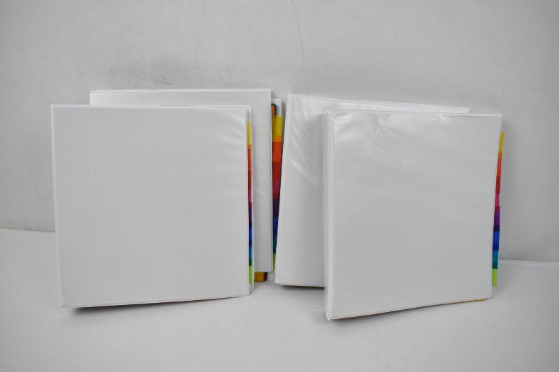 4 White Binders with 8 Pocket/Dividers Each - New
