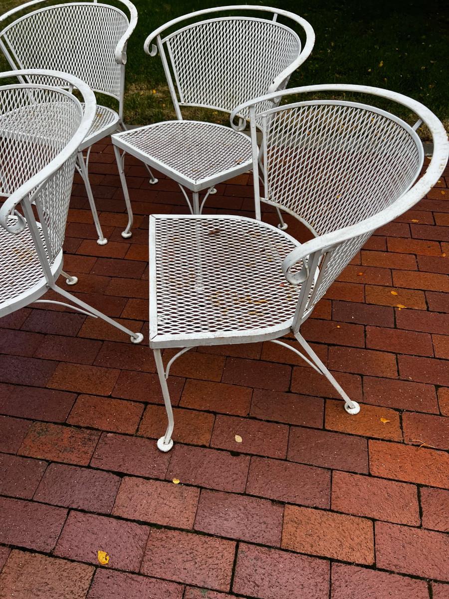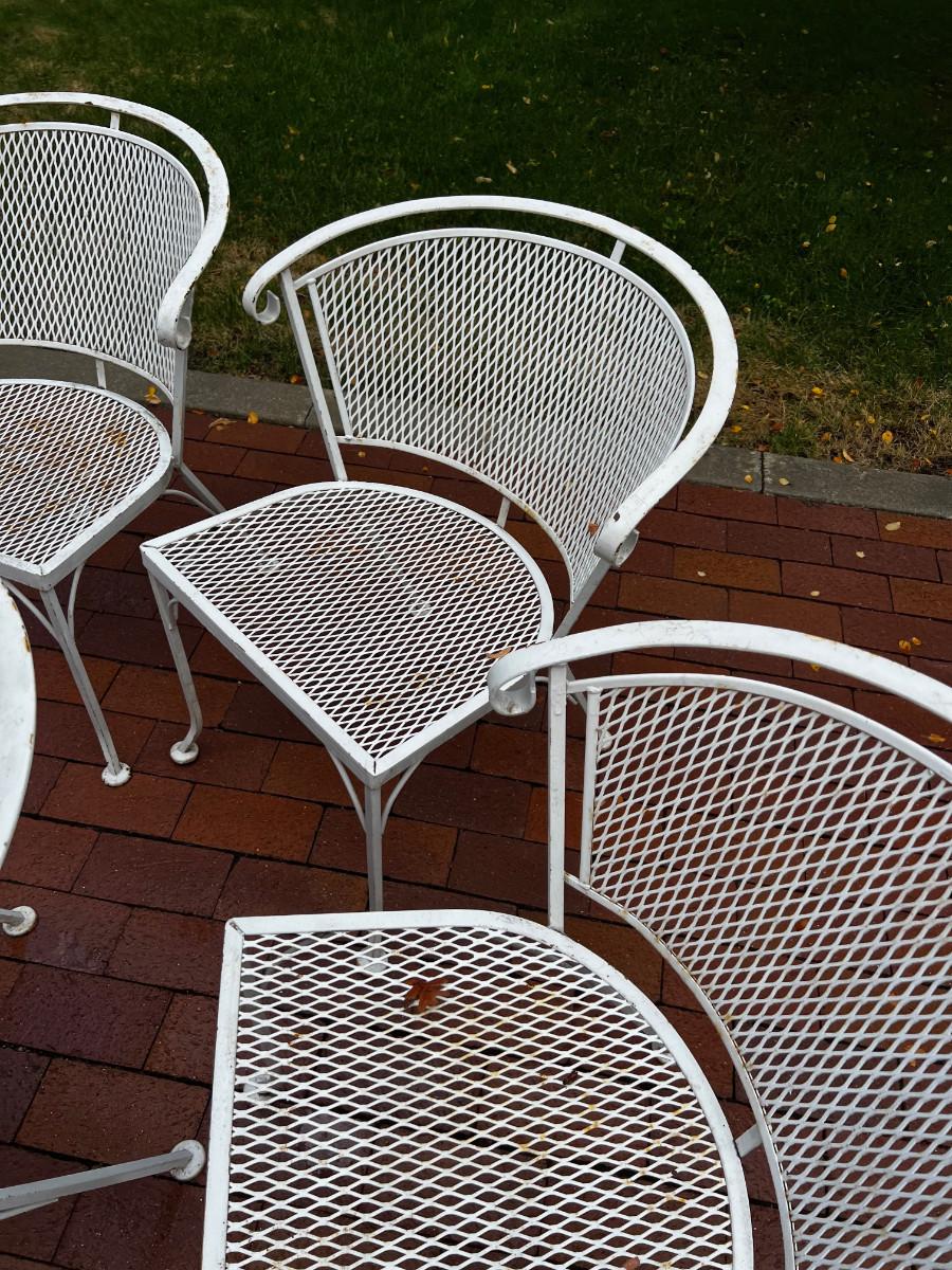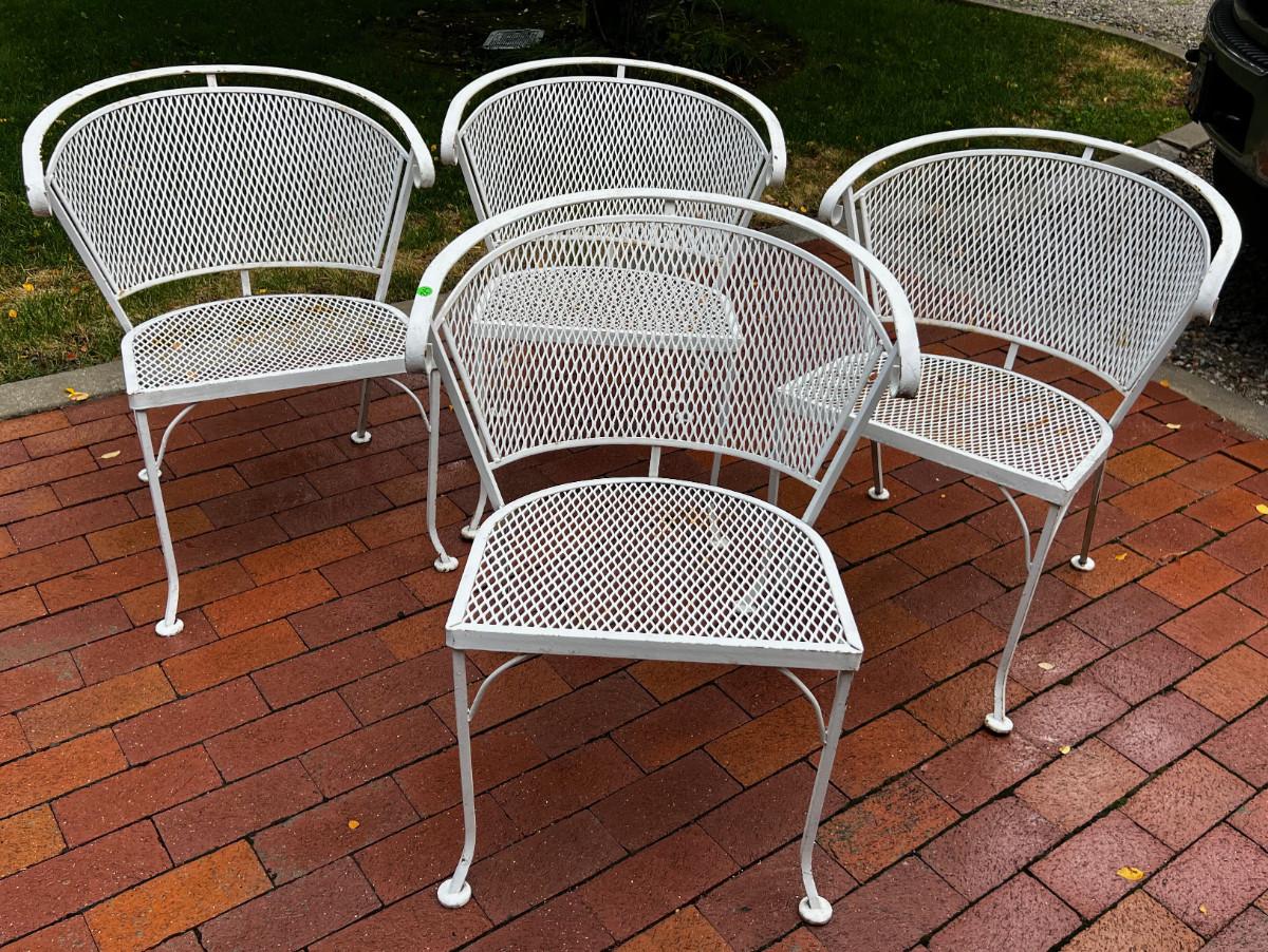 4 WHITE MCM Wrought Iron Patio Chairs.