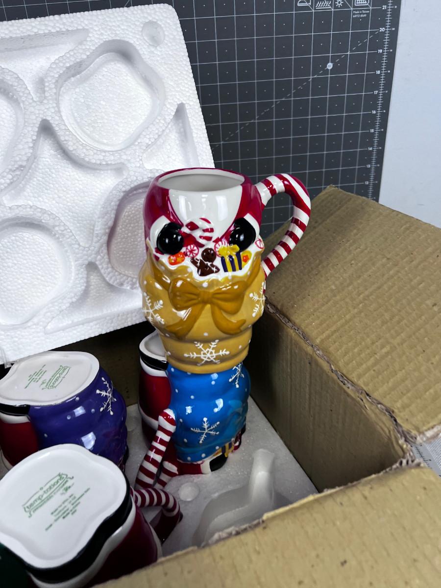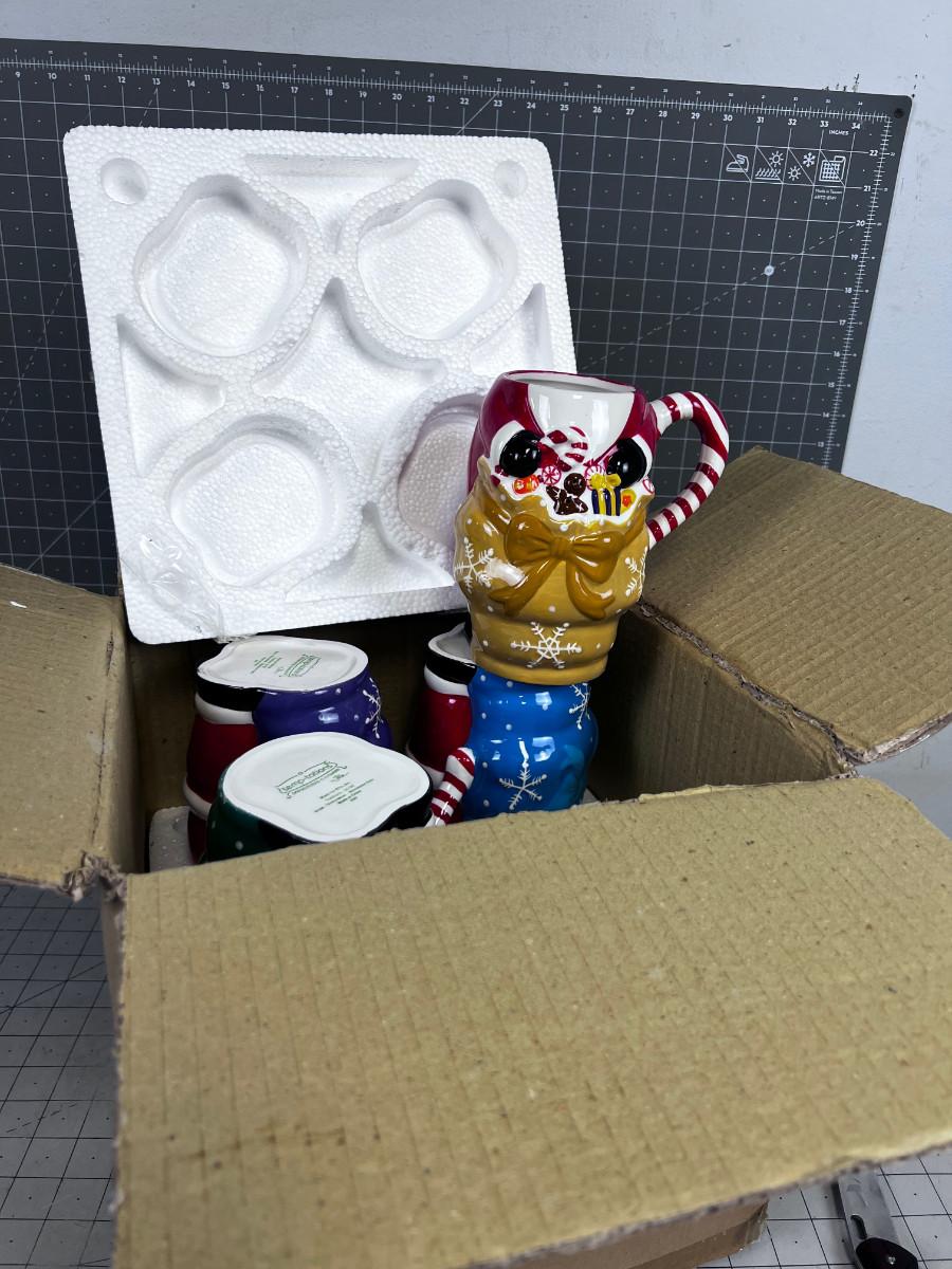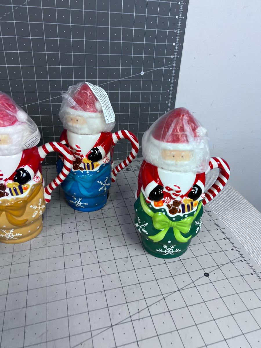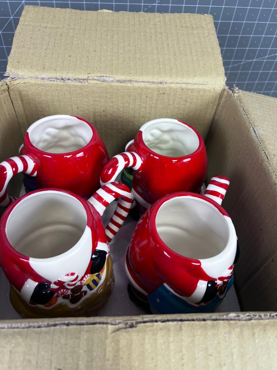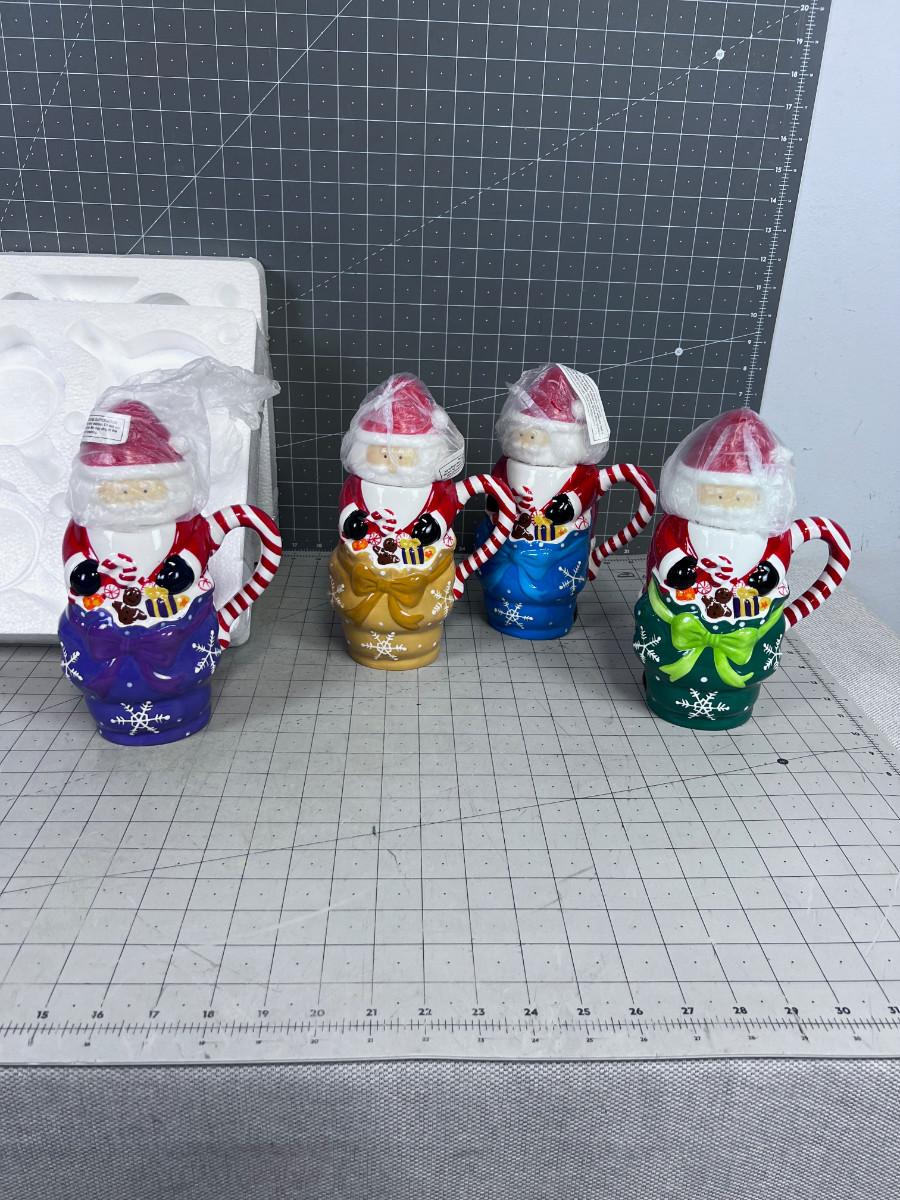 (4) with A Lid, BRAND NEW Box titled SANTA CLAUS Mugs