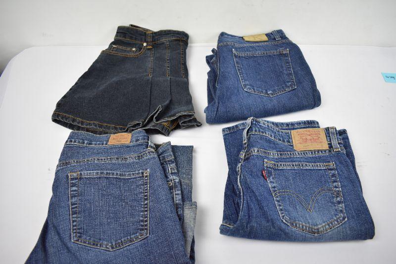 4 Women's Pants: Denim Skirt 7, Ck Jeans 7, Levi 8 Short, Levi 9 S