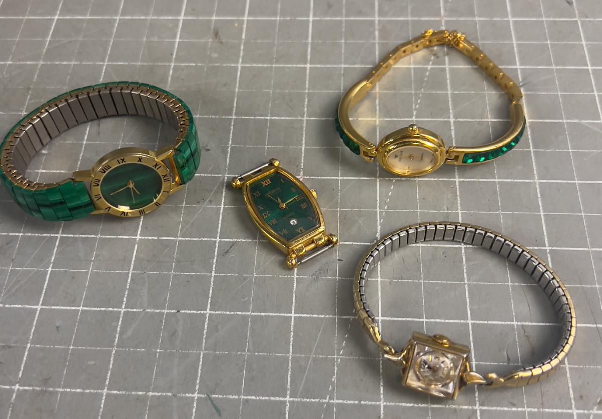 (4) Women's Watches: Green Dials, Vintage Timex etc.