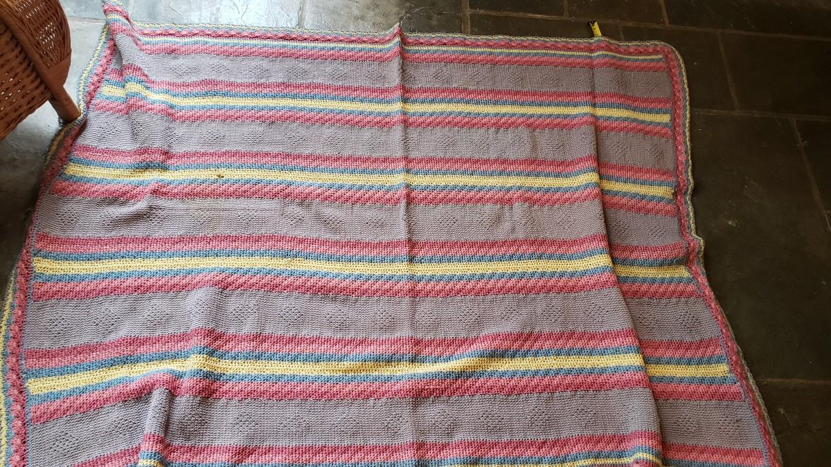4' x 5' Vintage crocheted blanket with Stripes