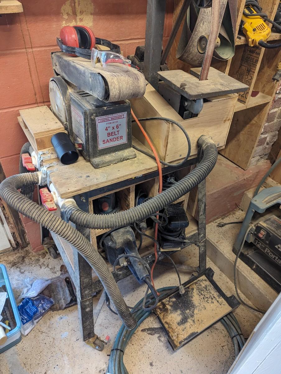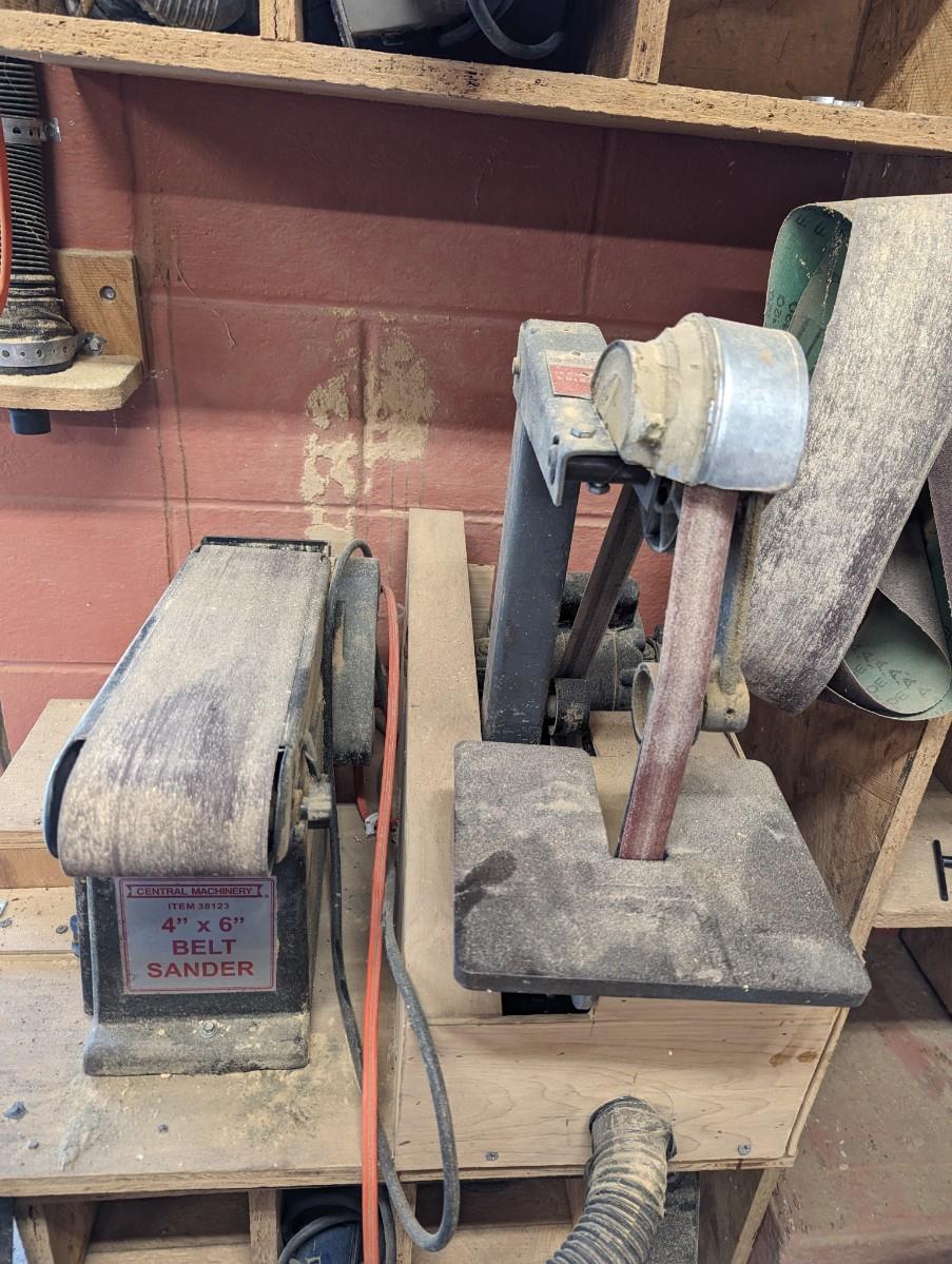 4" x 6" Belt Sander Rockwell Sander Grinder Attached To A Rolling Stand