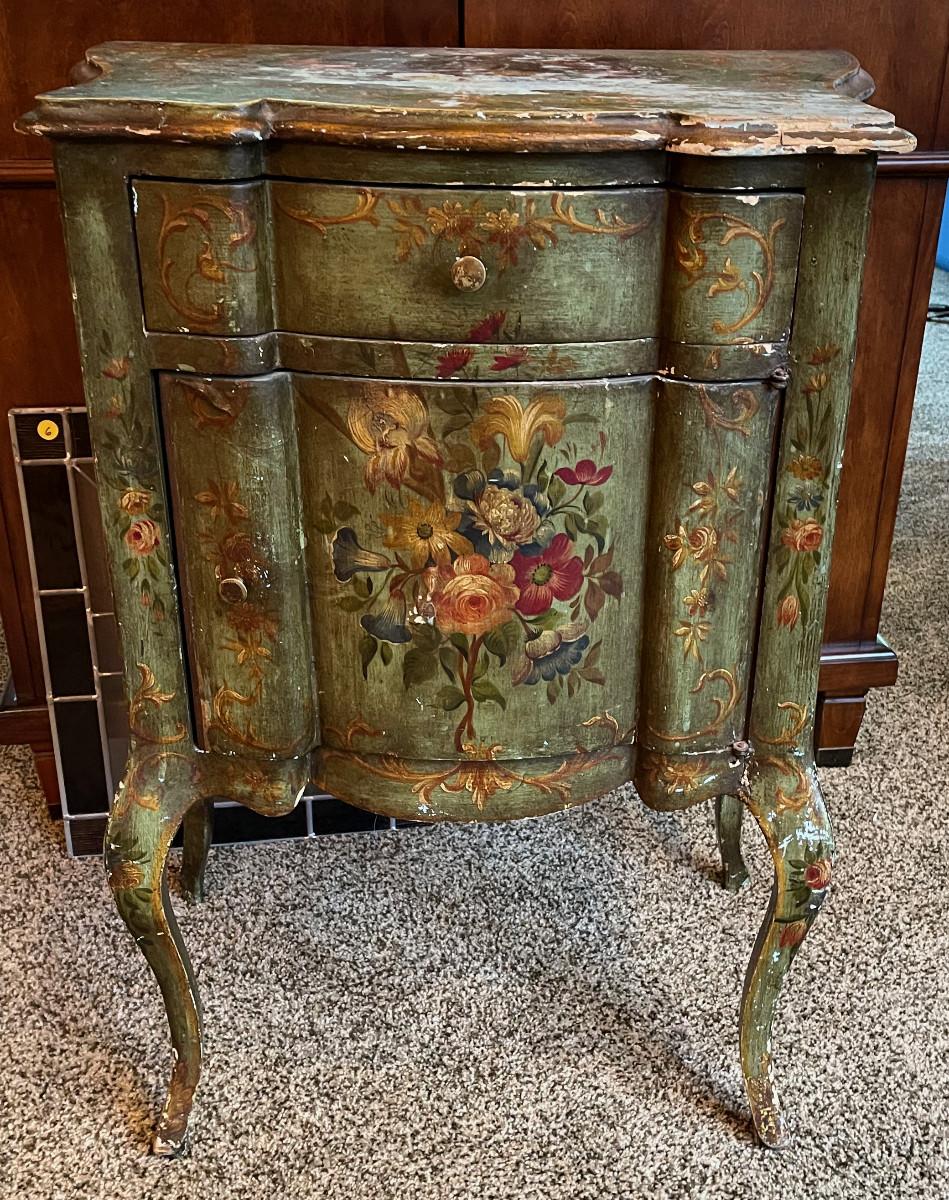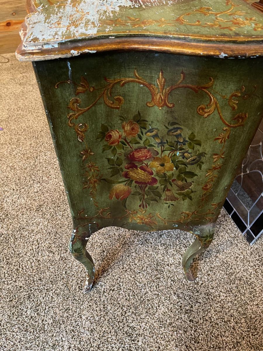 #40 Antique Bombe Tole Painted Chest