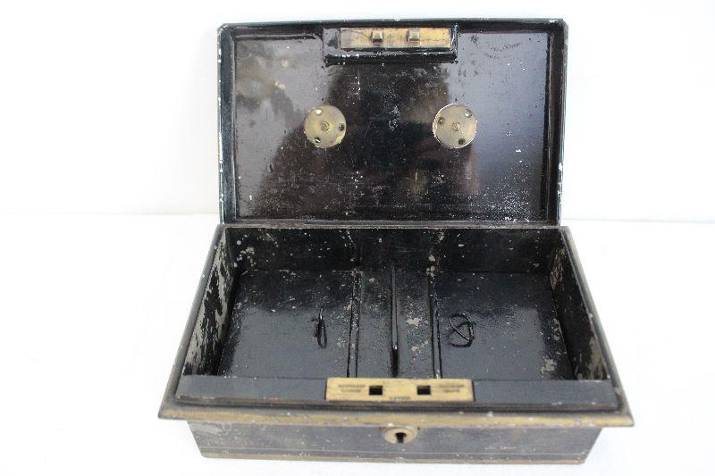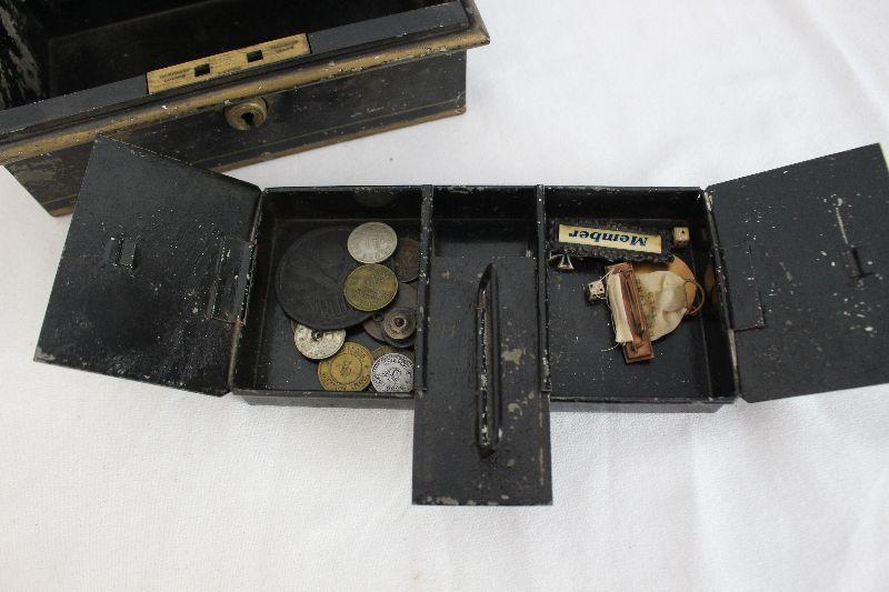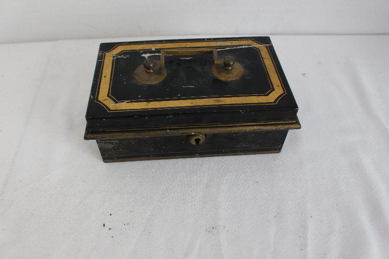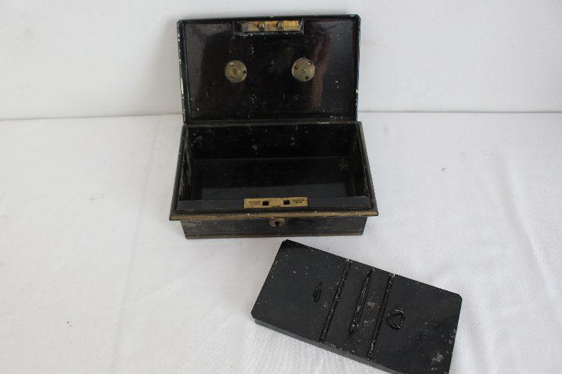 #40 Antique Petty Cash Money Box w/ Removable Tray and Tokens-Black Gold