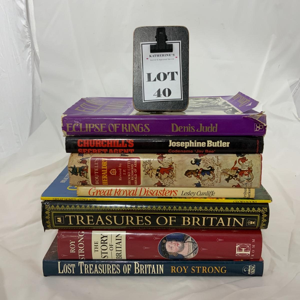 From the Estate of Peter Radovanovich: Eight Books about the United Kingdom. Lost Treasures of Britain by Roy Strong | The Story of Britain by Roy Strong | Treasures of Britain (Traveler’s Guide) | Great Homes of England by Crown Books | Great Royal Disasters by Lesley Cunliffe | Boutell’s Heraldry by J.P. Brooke-Little, FSA | Churchill’s Secret Agent by Josephine Butler | Eclipse of Kings by Denis Judd. All books are in Excellent to Fair used condition. Some wear on copies that have been in the collection for years. Please see photos for details and condition. ::: Shipping is available on this lot. If you require shipping you must let us know at the close of the auction. We will coordinate with you after the item has been won. Shipping fees will include insurance up to or exceeding the value of all items being mailed. If you have any questions regarding this lot please contact the auctioneer either via this website, by direct email or by phone. PICK UP TIMES and other important information can be found in the TERMS and DESCRIPTION of the auction. Please take a look for pertinent information. Thanks!